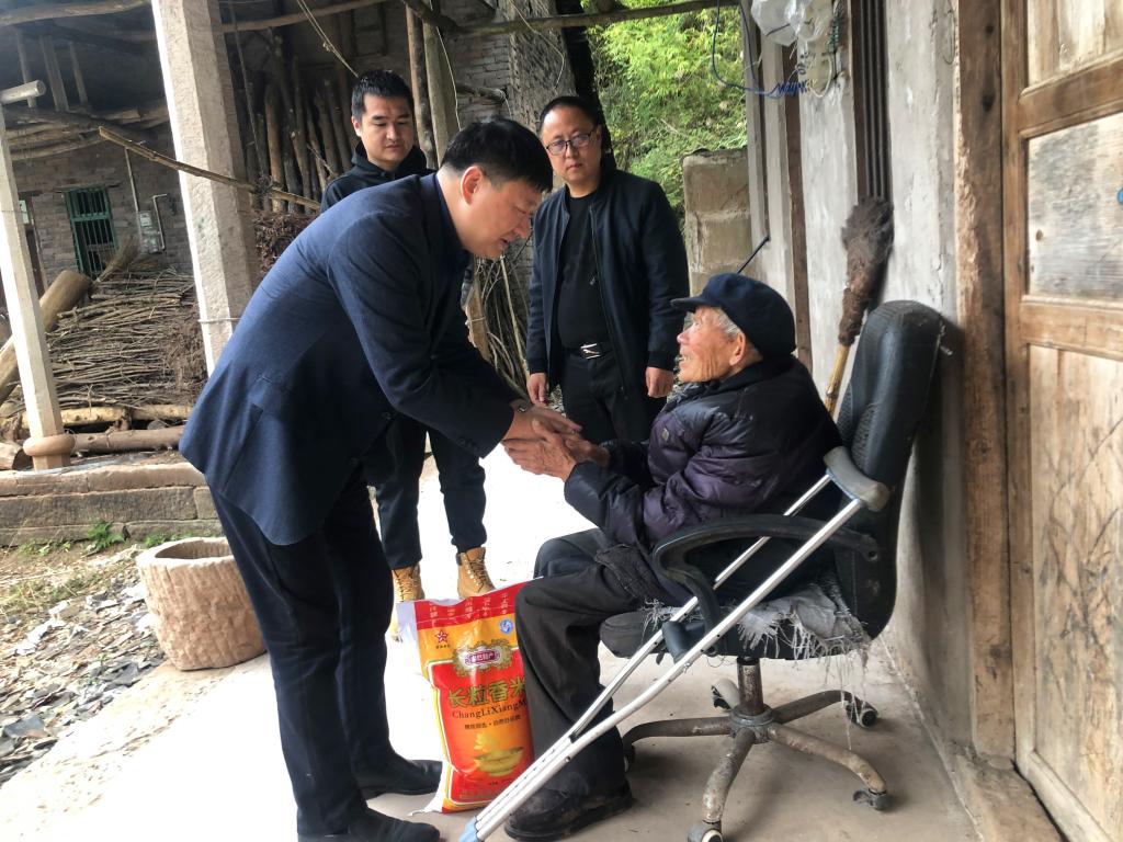 图为:汪涌泉走访慰问胡家沟村困难群众