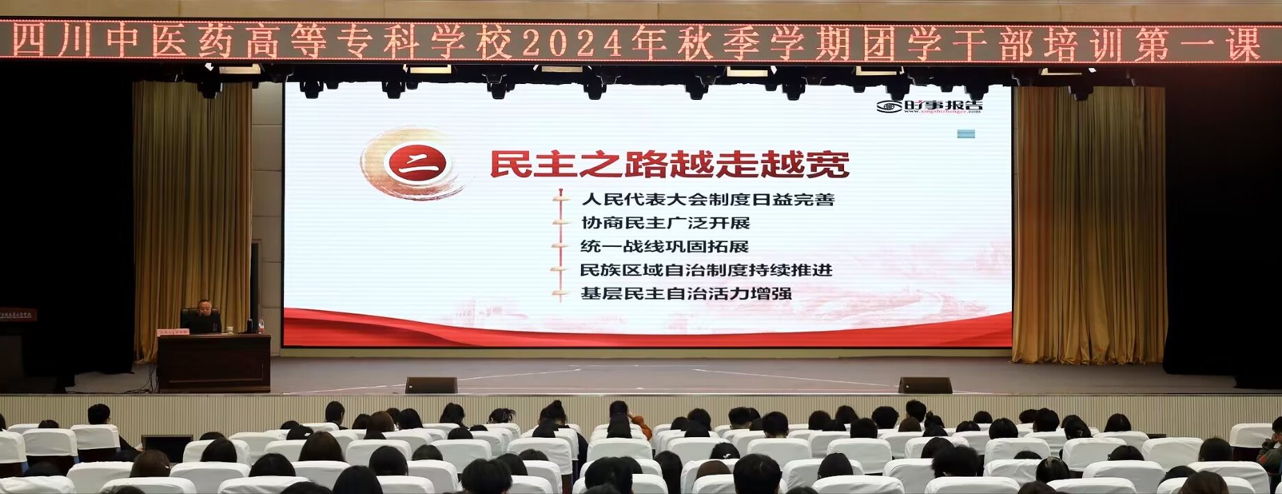 11月12日,我校2024年秋季学期团学干部培训班开班,校党委副书记商碧辉讲授第一课,校团委负责人、各学院团总支书记和400余名团学干部及青年学生参加。