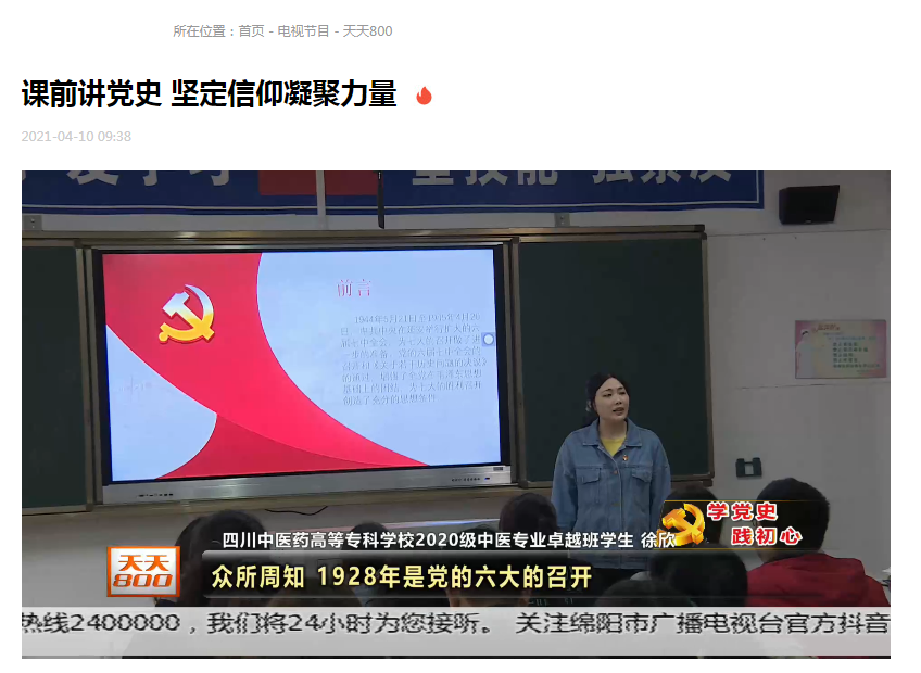 【导语】新时代的青年成长于和平年代,党史学习教育对这个群体也有着特别的意义。四川中医药高等专科学校广泛开展“人人讲党史”活动,学生们走上讲台,讲述党的历史,以这种创新的形式,凝聚青年力量。
