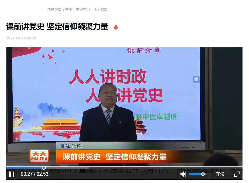 【同期声】 四川中医药高等专科学校马克思主义学院院长刘建文 我们主要是想让学生在参与党史分享中 提高学生对党史的认识了解和认同 增强认识中国共产党为什么能 马克思主义为什么行 中国特色社会主义为什么好 不断增强大学生的理想信念努力学习医学知识 为人类的健康服务