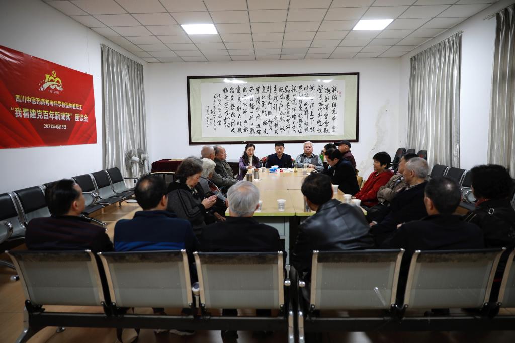 4月13日,四川中医药高等专科学校召开离退休教职工座谈会,以“我看建党百年新成就”为主题,座谈中国共产党百年的辉煌成就,歌颂党的丰功伟绩。