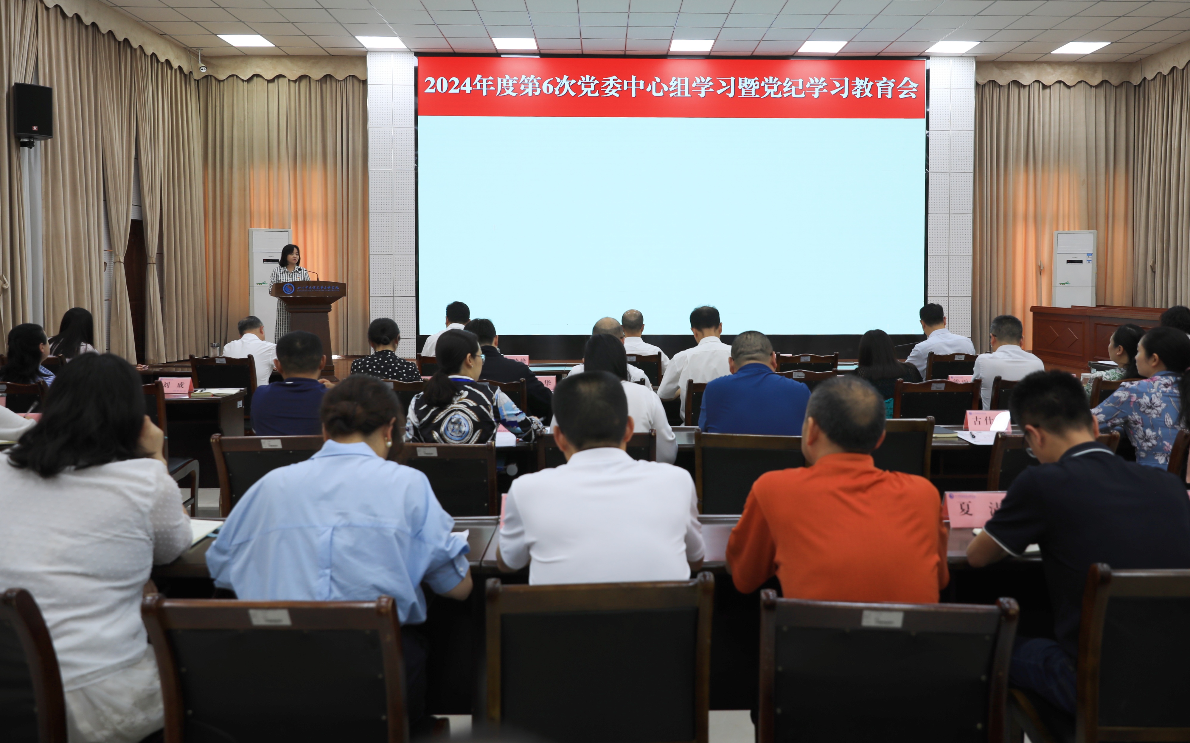 5月29日,我校召开2024年度第六次党委中心组学习暨党纪学习教育会,校领导班子和全体中层管理干部参加。