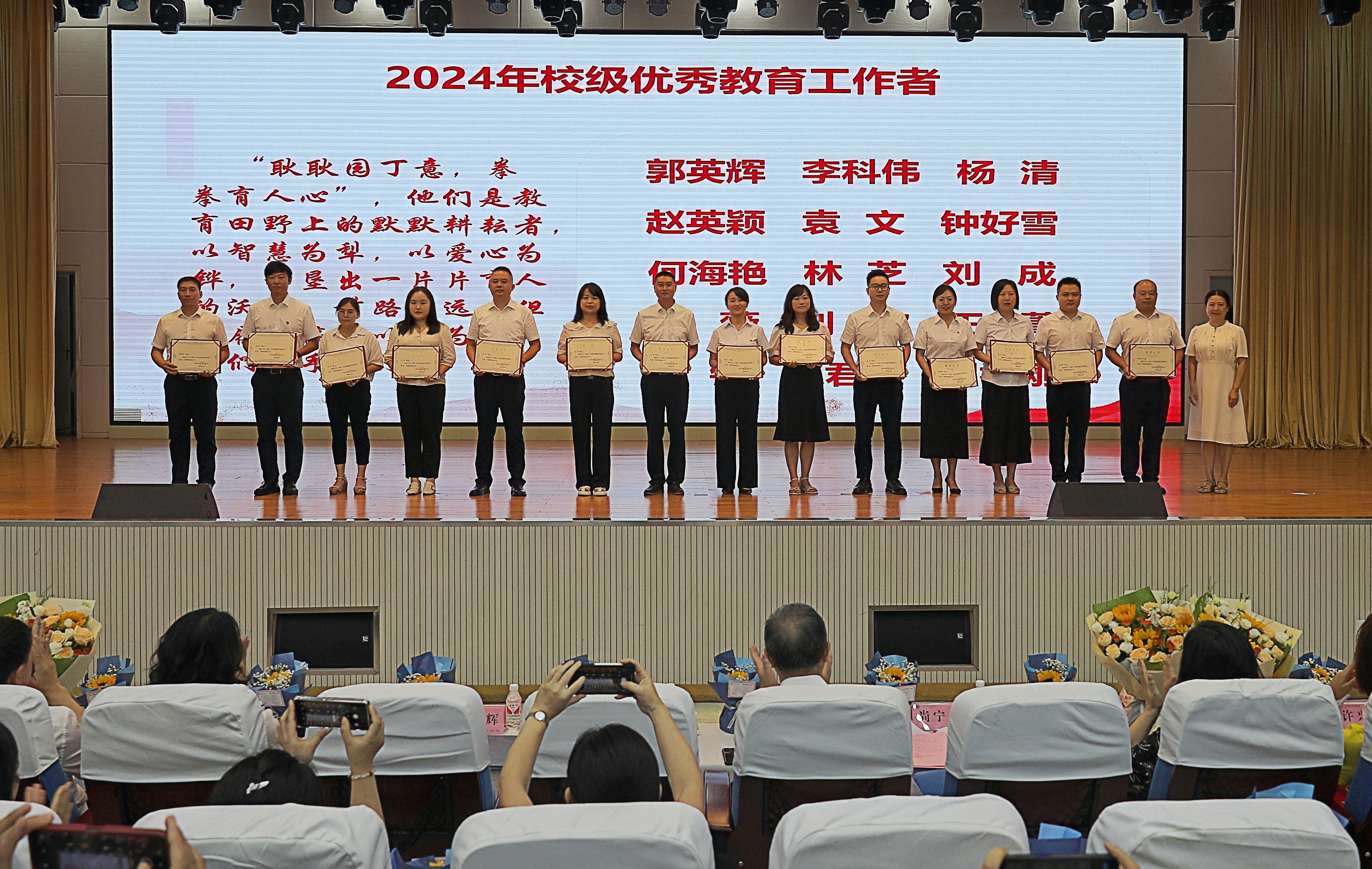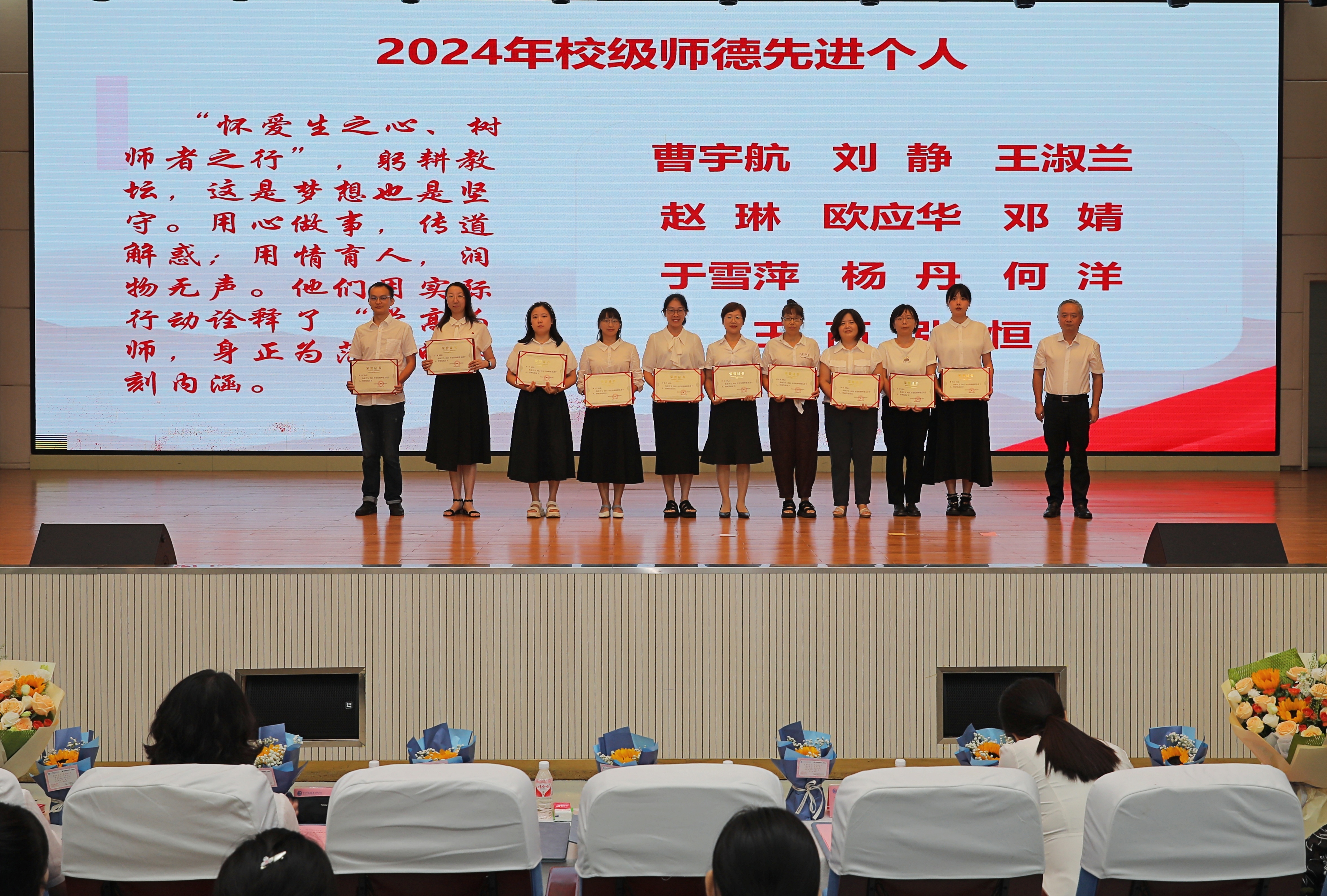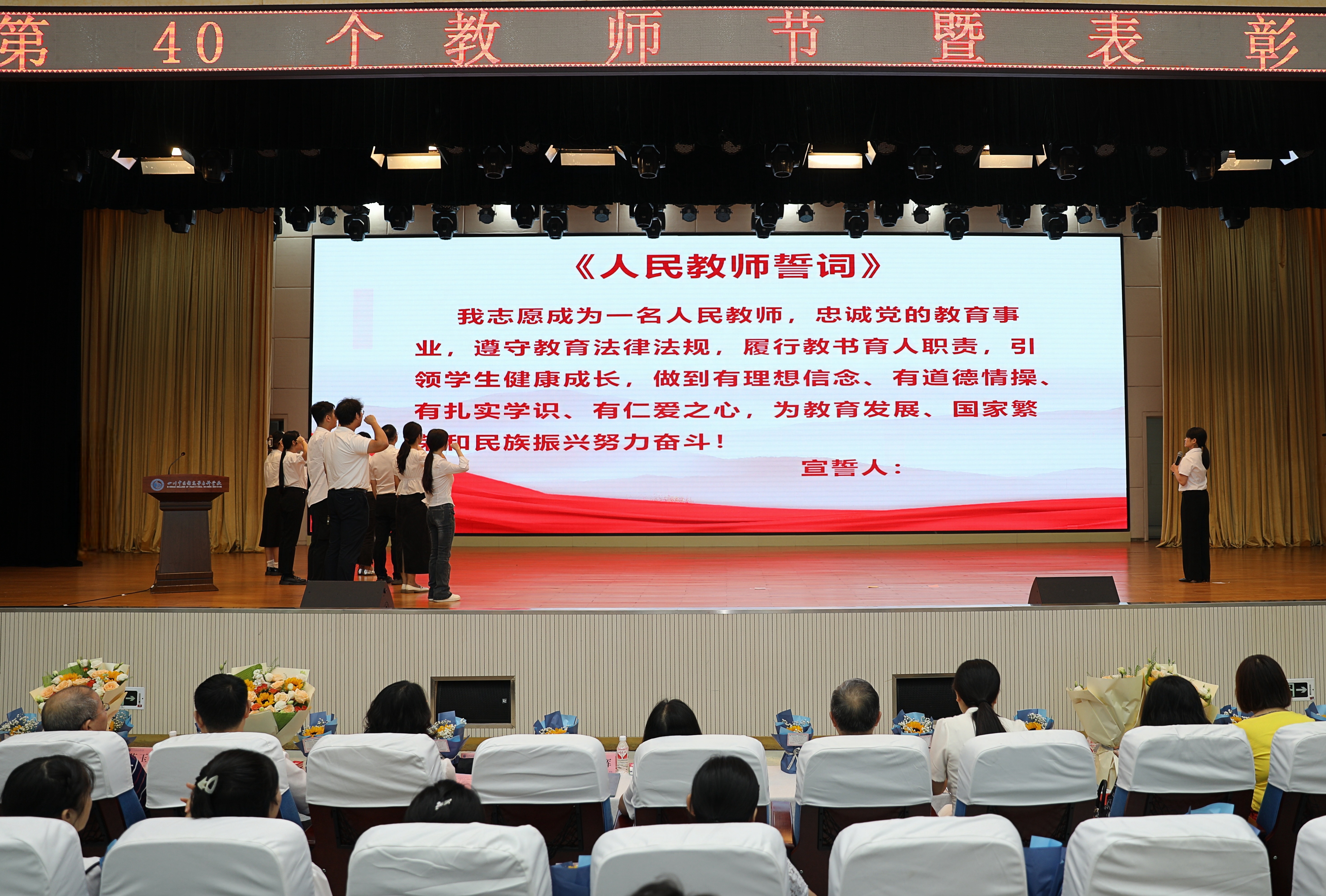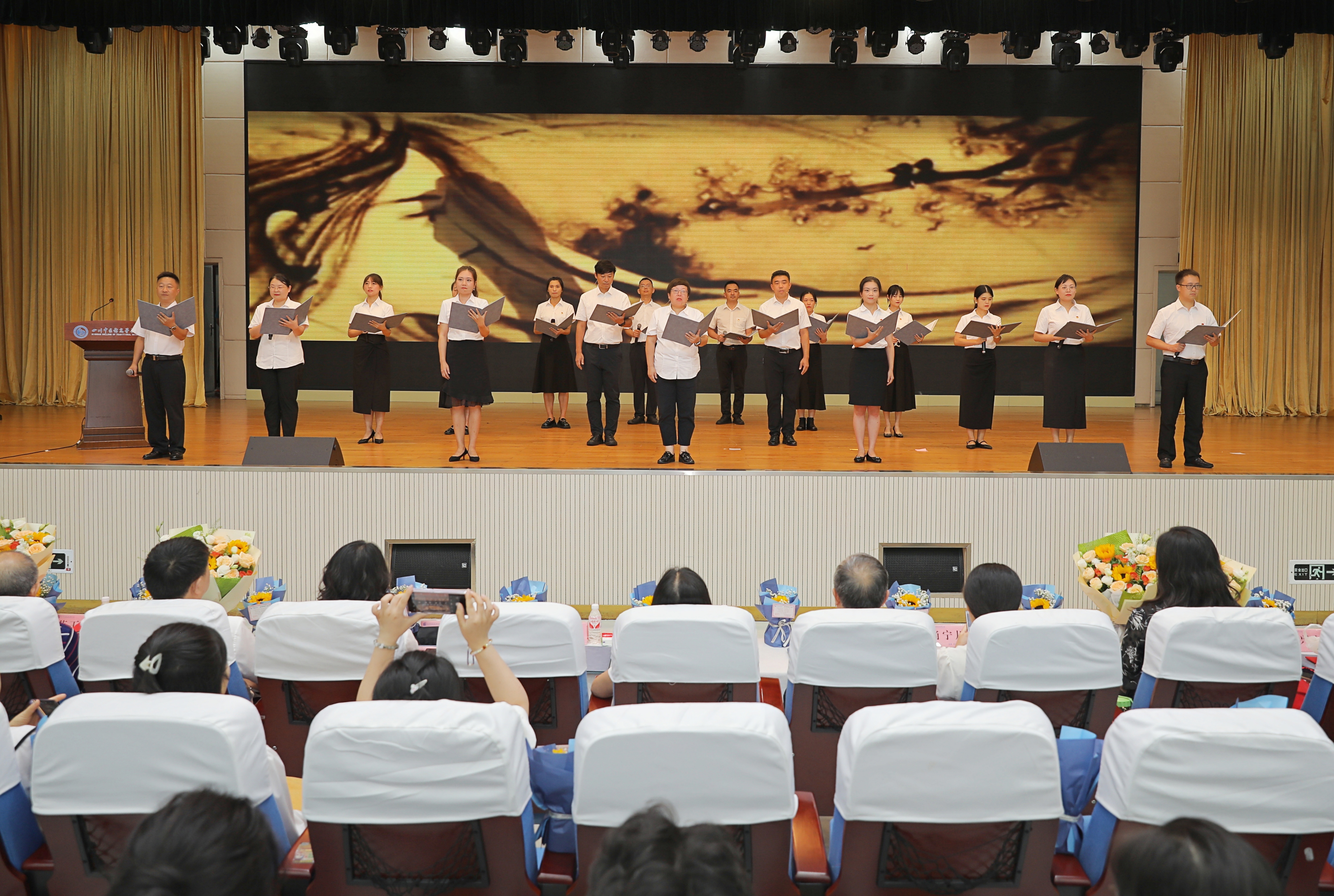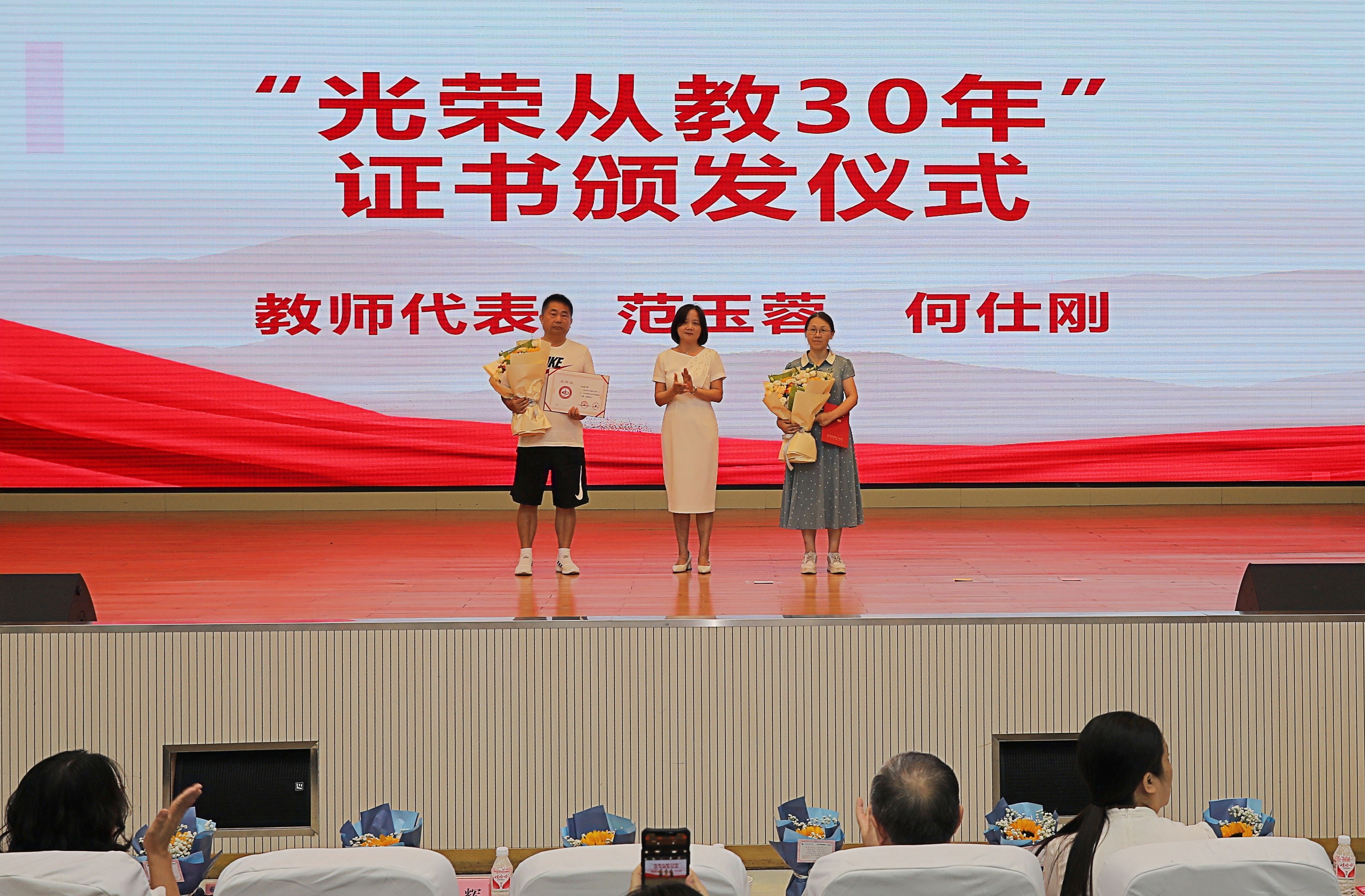 会议进行了“光荣从教30年”证书颁发仪式、退休教职工荣休仪式、新入职教师宣誓仪式;为获得市、校级师德先进个人、优秀教师、优秀教育工作者及就业先进集体等荣誉称号的集体和个人颁发了荣誉证书。