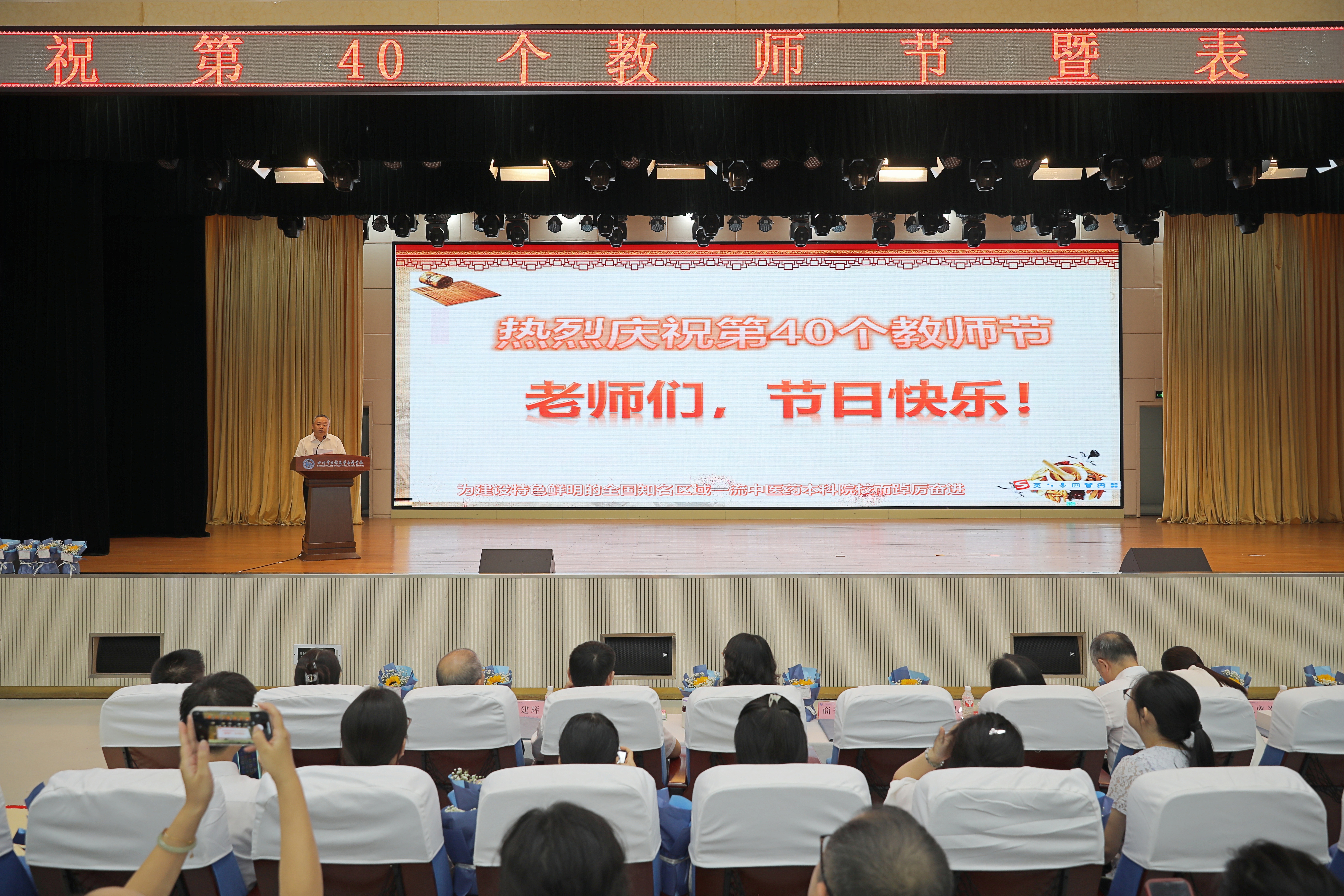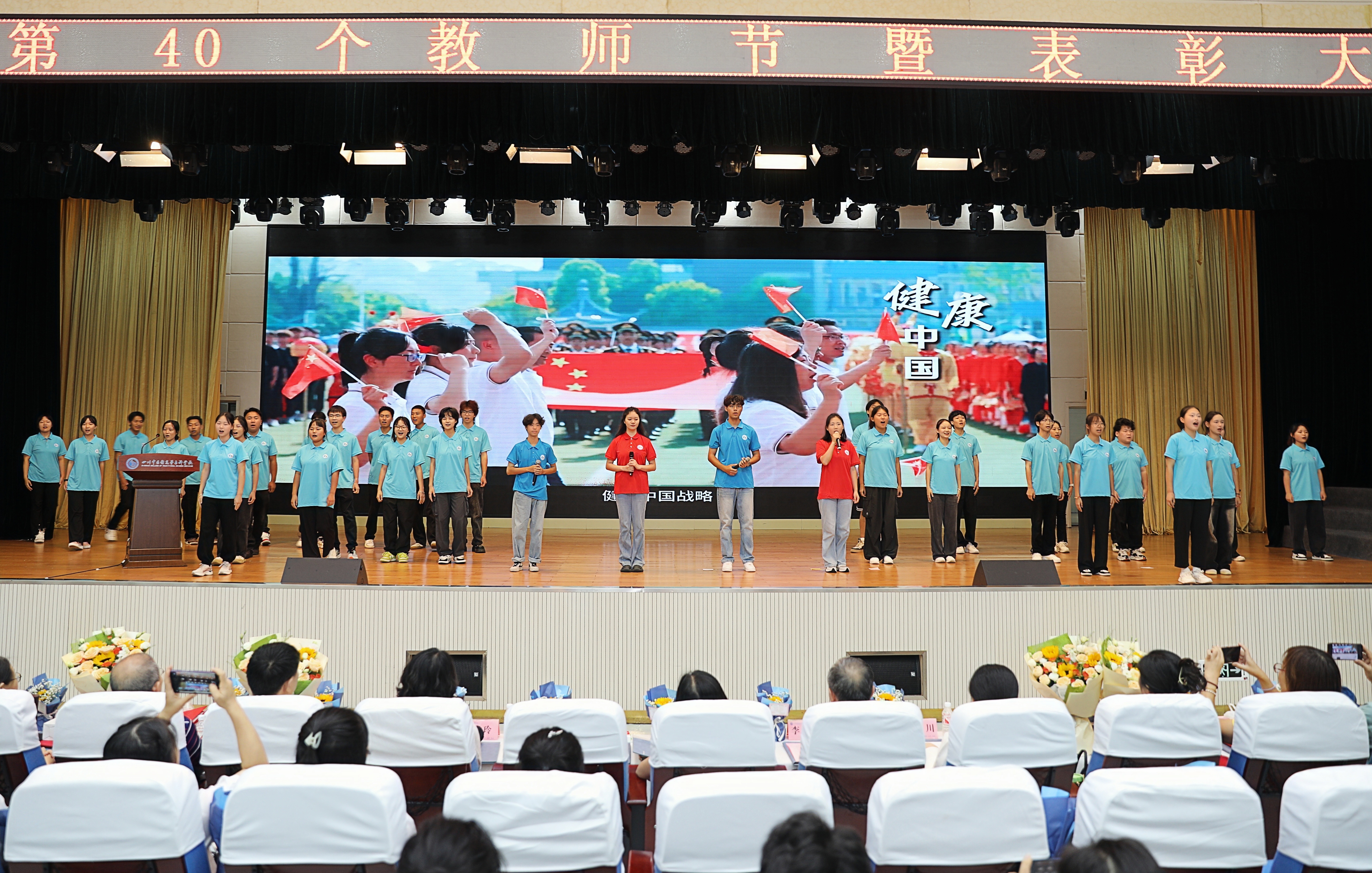 9月9日,在第40个教师节来临之际,我校举行了2024年教师节庆祝表彰大会。校党委书记李炜弘、校党委副书记商碧辉,纪委书记李文虎,副校长肖玲、尚宁川,受表彰的先进集体和个人代表,各学院、各部门主要负责人,附属医院代表、退休教师代表、新入职教师以及师生代表400余人参加大会。