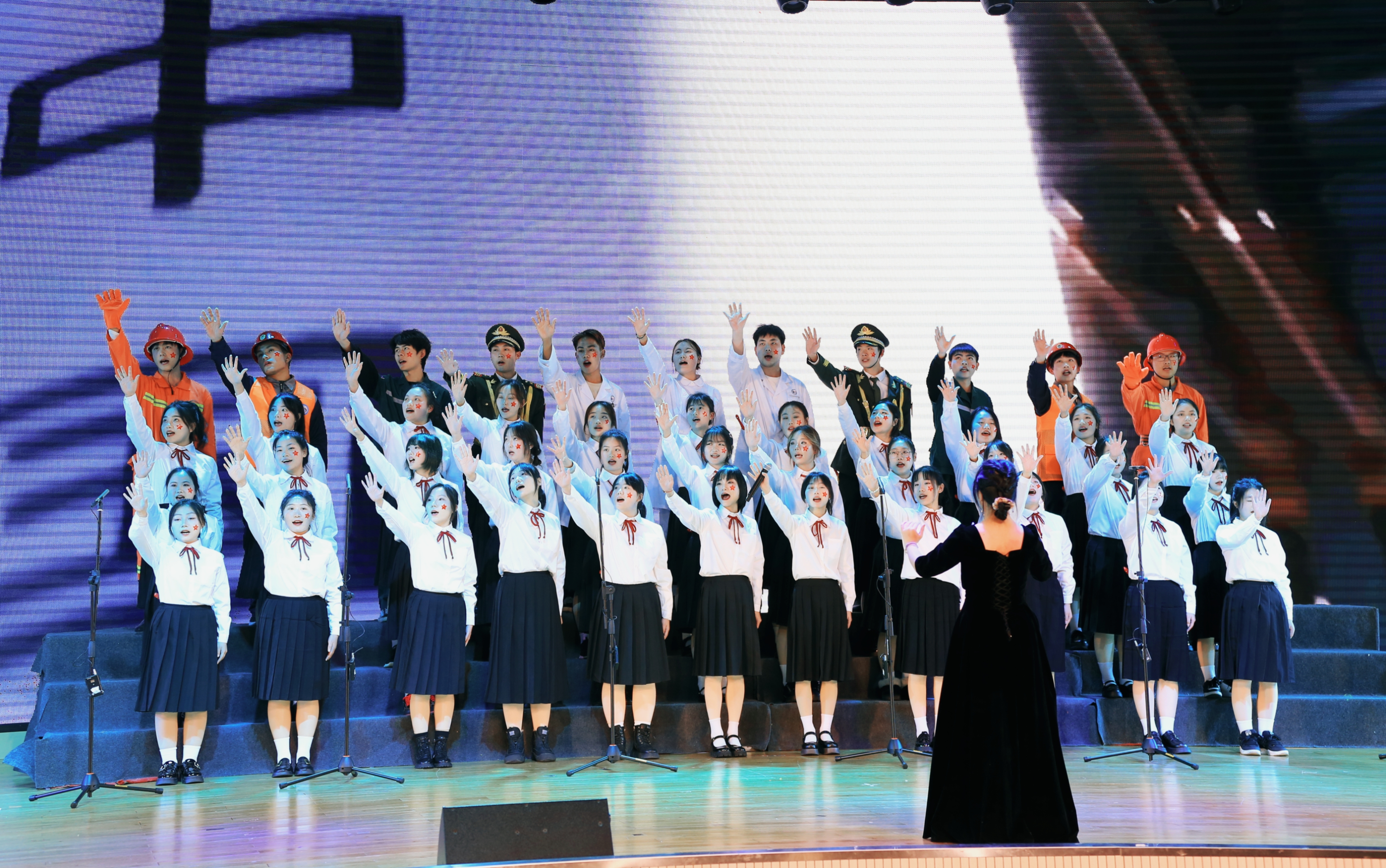 李炜弘在致辞中表示,89年前的进步学生受中国共产党八一宣言的感召,高唱着“同学们,大家起来担负起天下兴亡”的救亡之歌,走向街头发动了轰轰烈烈的抗日救亡运动,推动了全民抗战的到来。从那时起,继承了“一二·九”精神的中国青年学生就成为了中国共产党的坚强领导下社会主义革命、建设和改革开放伟业的生力军。她勉励全校师生和青年朋友们,要继续传承和发扬“一二·九”精神,坚持思想铸魂,不断追求卓越;坚持艺术实践,促进全面发展;坚持引领传播,绘就更宏伟蓝图。在我校高质量发展的新征程上唱响更为嘹亮激越的青春之歌。