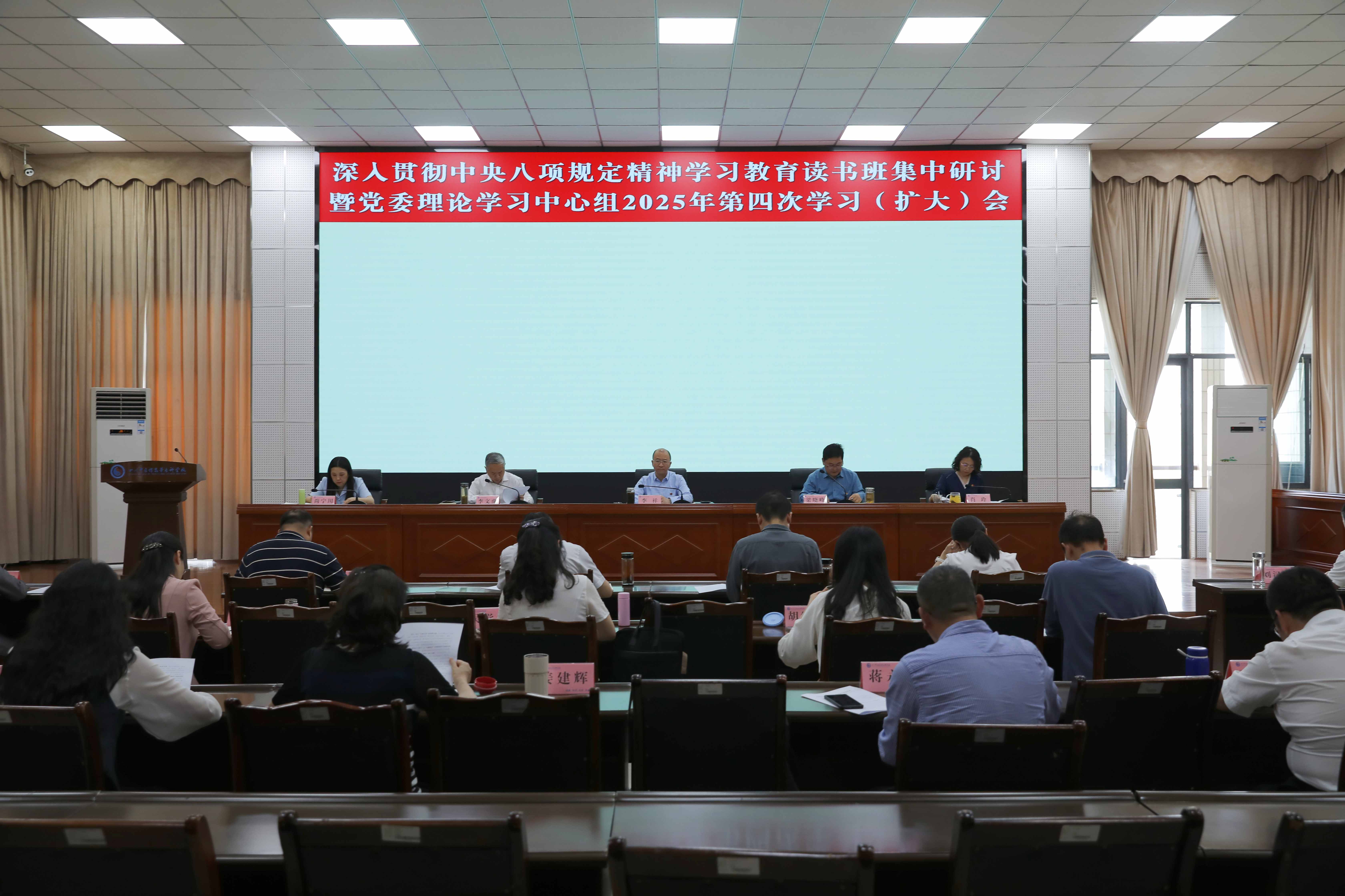 为深入学习领会习近平总书记关于加强党的作风建设的重要论述和中央八项规定及其实施细则精神,进一步推动全面从严治党向纵深发展,我校于4月16-18日召开深入贯彻中央八项规定精神学习教育读书班暨党委理论学习中心组2025年第4次学习(扩大)会,全体在家校领导及中层正职干部参加。