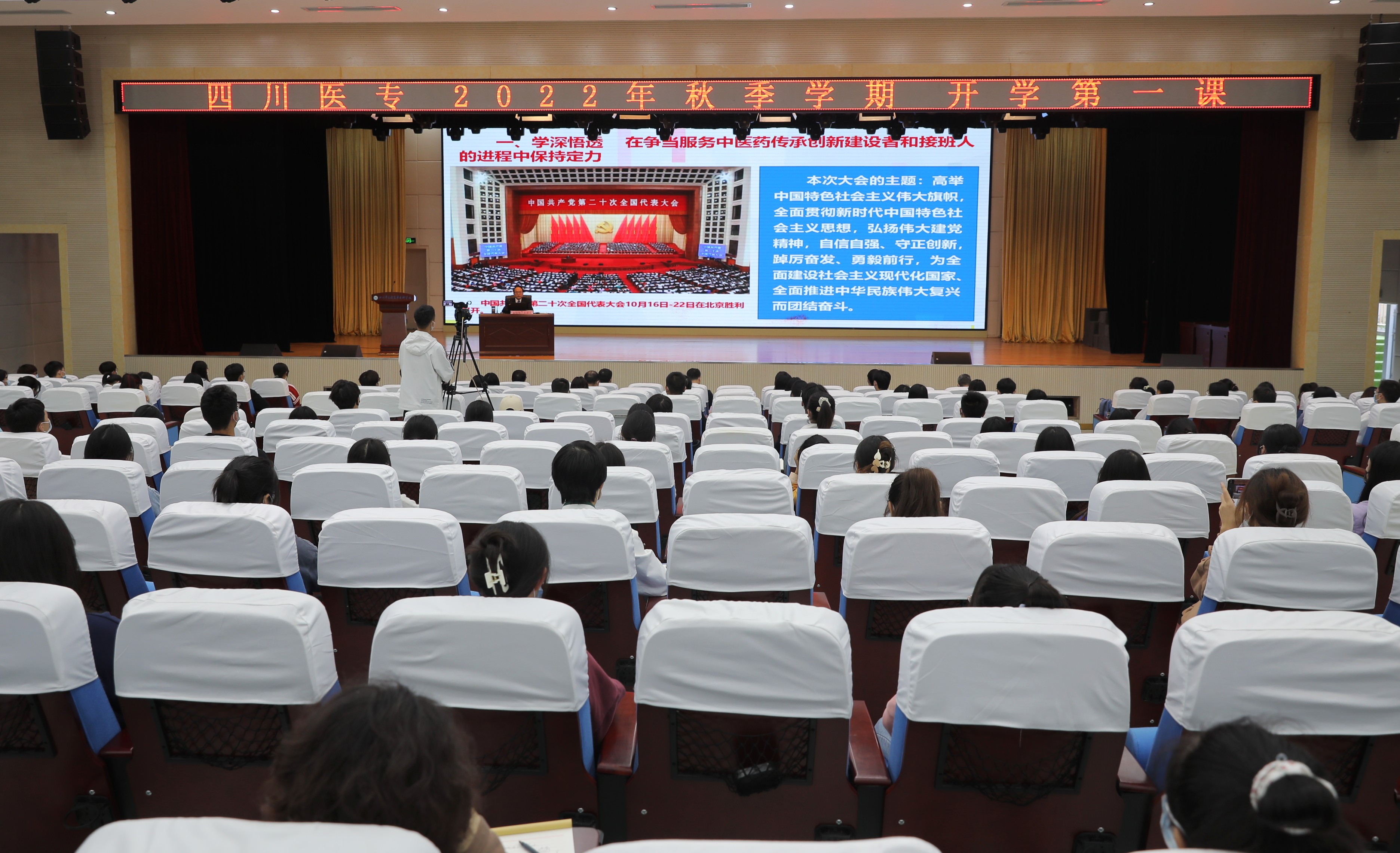 10月31日,校党委书记、硕士生导师、四川省卫生健康首席专家秦晓明通过线下课堂讲授和线上直播的方式,为我校学子讲授了一堂生动的“开学第一课”。