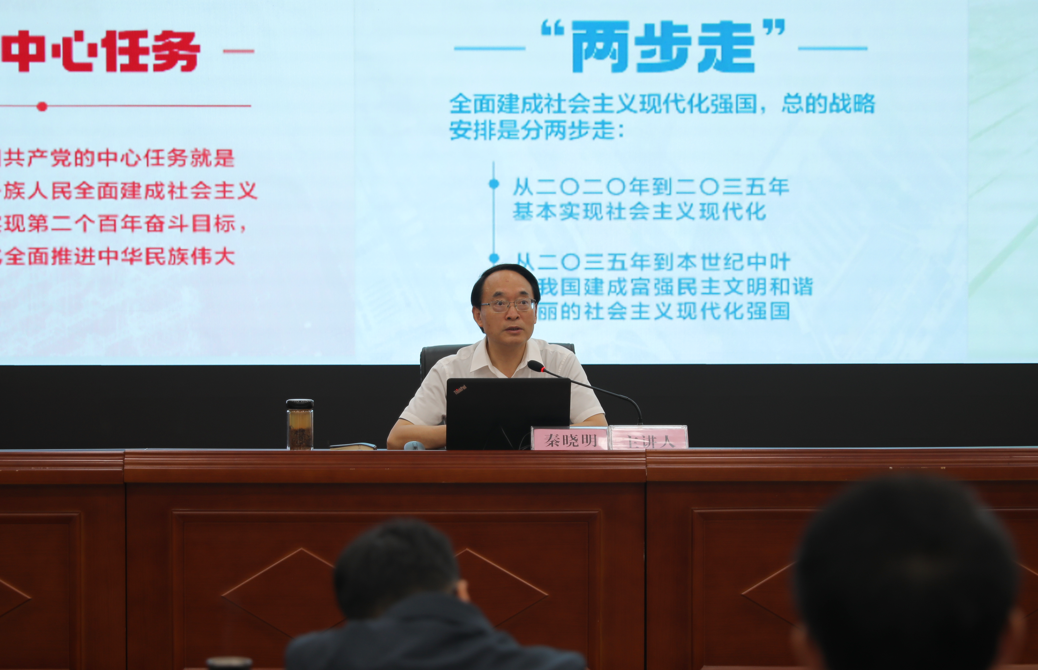 10月24日,我校举办专题党课学习宣传党的二十大会议精神,校党委书记秦晓明作了《抢抓机遇 埋头苦干 在推进我校高质量发展的关键时期更加奋发有为》的主题报告。各党总支书记、组织员和部分辅导员以及相关部门负责人等参加。