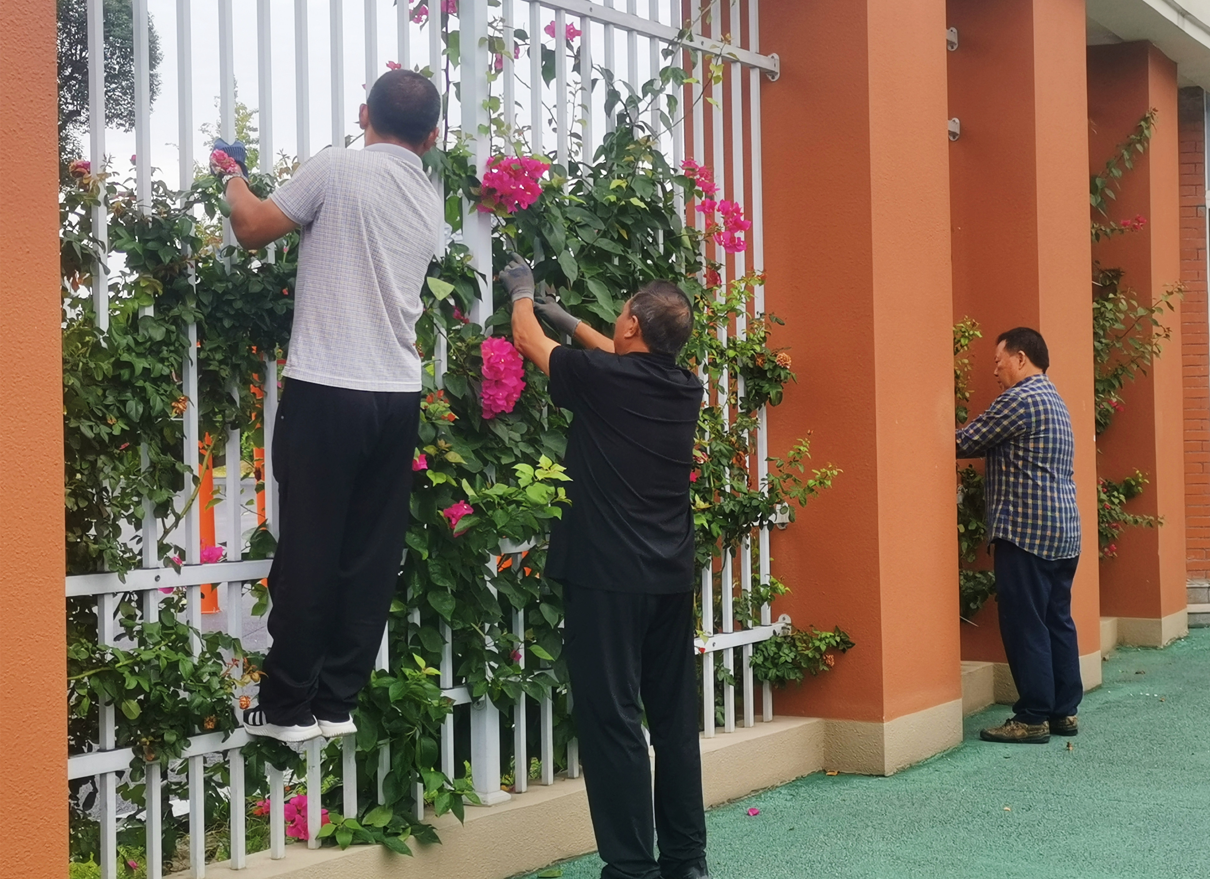 后勤队伍在跟随学校的发展变迁过程中争当先锋队、勇做拓荒牛,克难奋进开新局。2015年我校整体迁入教育园区之初,面对彼时的荒坡荒山,黄土飞扬,后勤部门认真贯彻落实校党委的决策部署,敢闯敢试、敢为人先:在校园绿化方面,打造“园林式”校园,完成了南校区600余平的苏州园林风格水景布景;在北校区主干道种植了樱花、蓝花楹、三角梅等数十种观赏性花种,形成了“四季有花开、所见皆芬芳”的美好校园氛围;在校园文化建设方面,紧紧围绕我校发展特色,种植了大量的银杏、杜仲等中草药,在主干道坡上安装了学校历史沿革主题浮雕,让学生在耳濡目染中感受我校艰苦奋斗创业史、全校教职工爱校如家的奋斗史、全校学生争创一流的创新史;在育人环境上,为了创造干净整洁的学习和生活环境,设计并安装数十个文化景观石,通过镌刻校训校规、文明寄语和美好期望,让学生在一言一行践行文明新风尚。