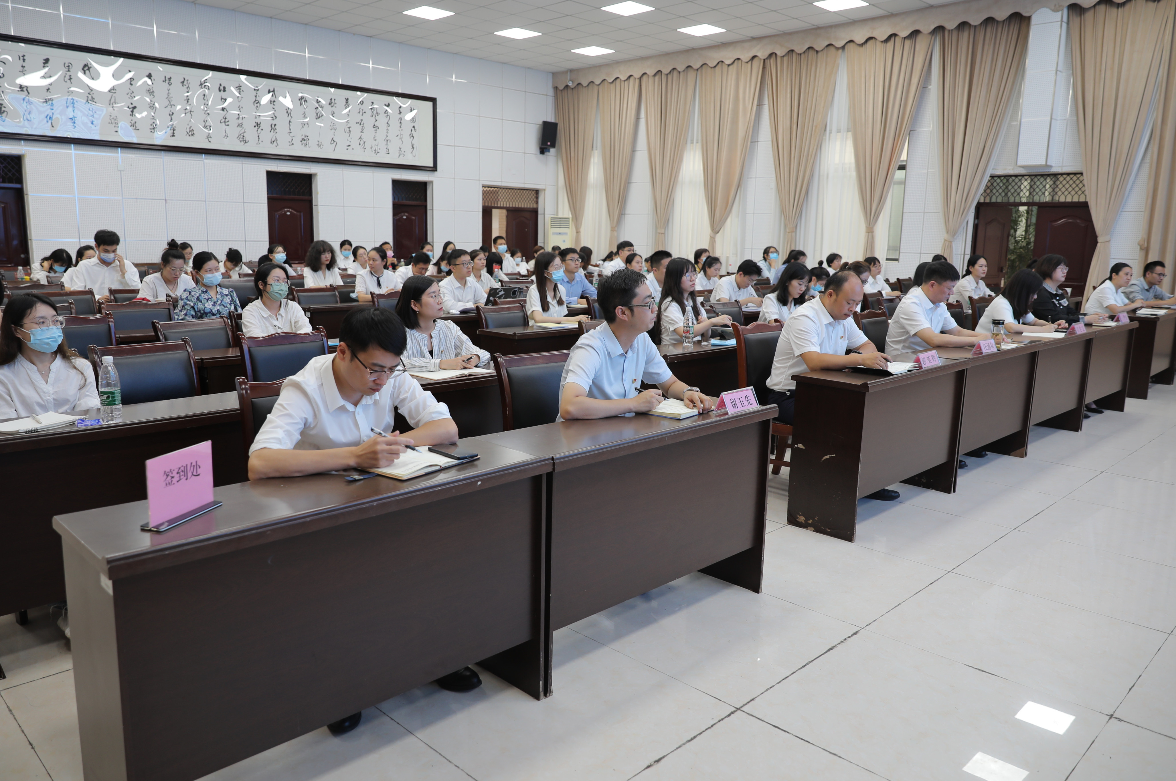 在第38个教师节到来之际,9月9日,校党委书记秦晓明为全校辅导员和新入职教师作《在推进我校高质量发展的进程中争创一流》专题辅导员报告;校党委副书记汪涌泉主持报告会。