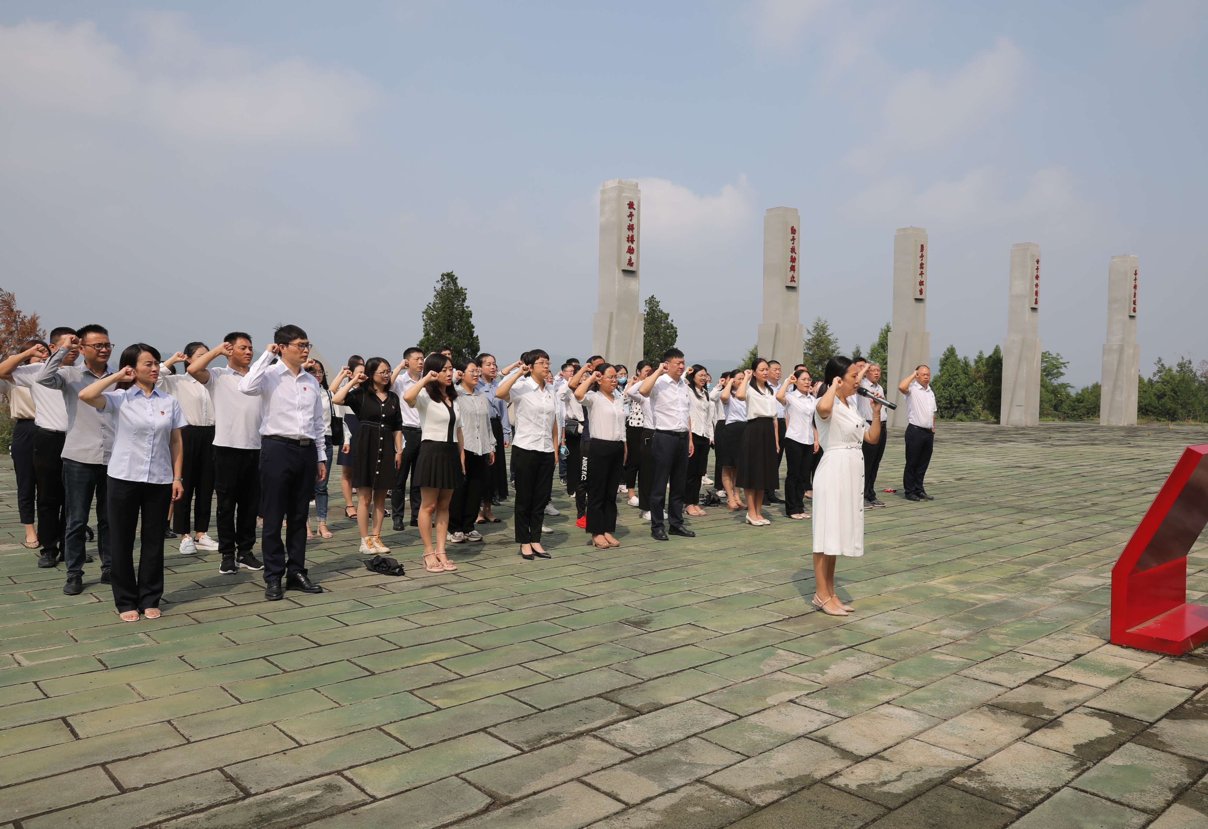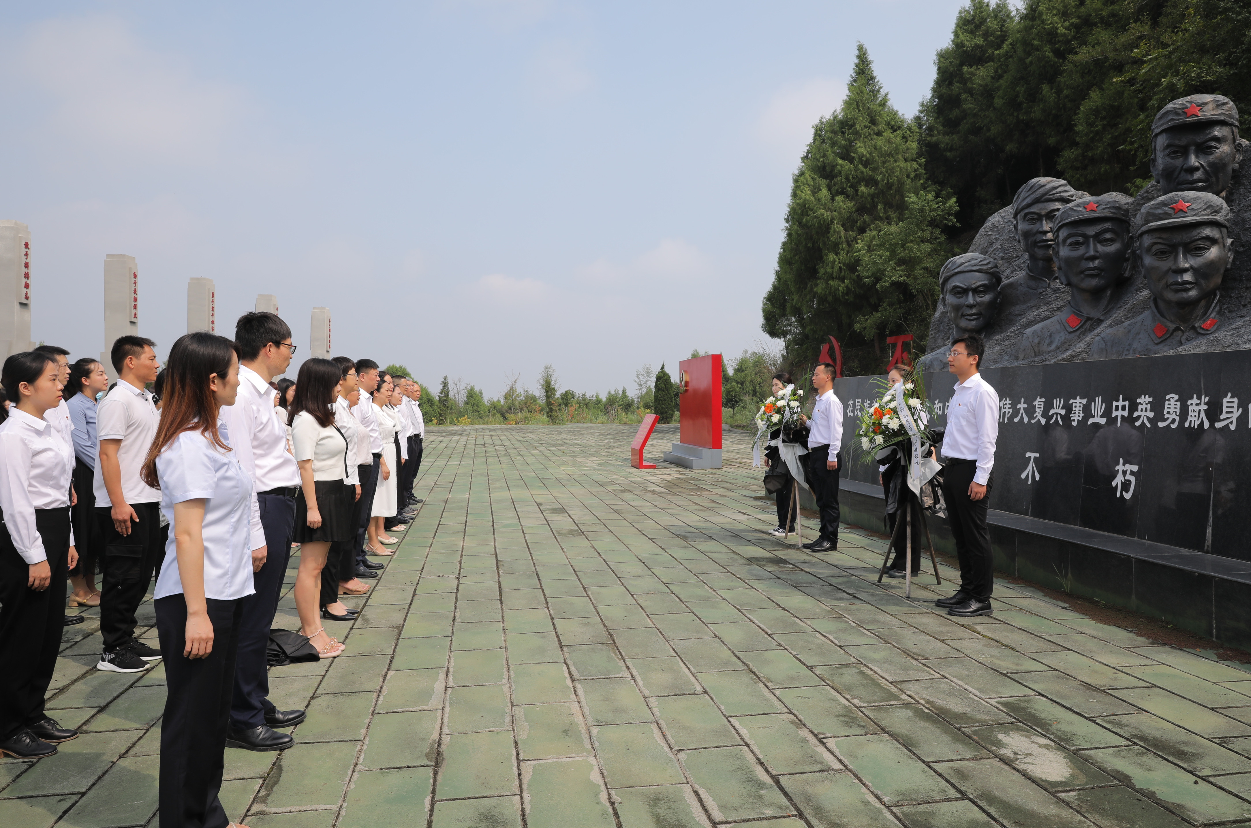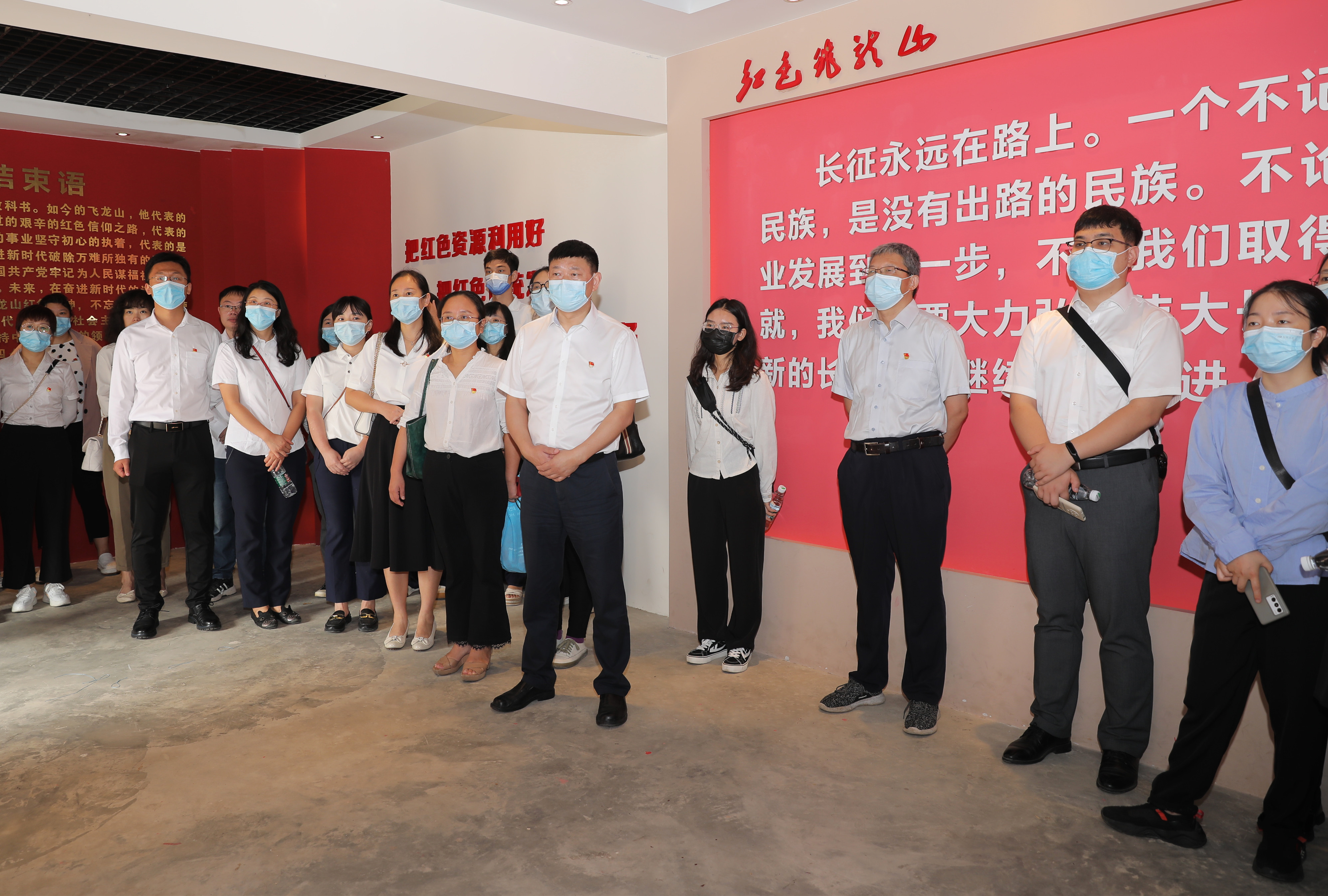 飞龙山下,英魂长存。飞龙山红军纪念馆内,老师们驻足于反映红军在飞龙山战斗和生活的图片、资料面前,深刻感受到革命先烈英勇无畏和坚贞不屈的革命精神。在烈士公祭广场,全体人员向烈士敬献花篮,肃立默哀致思;全体党员重温入党誓词,砥砺初心使命。