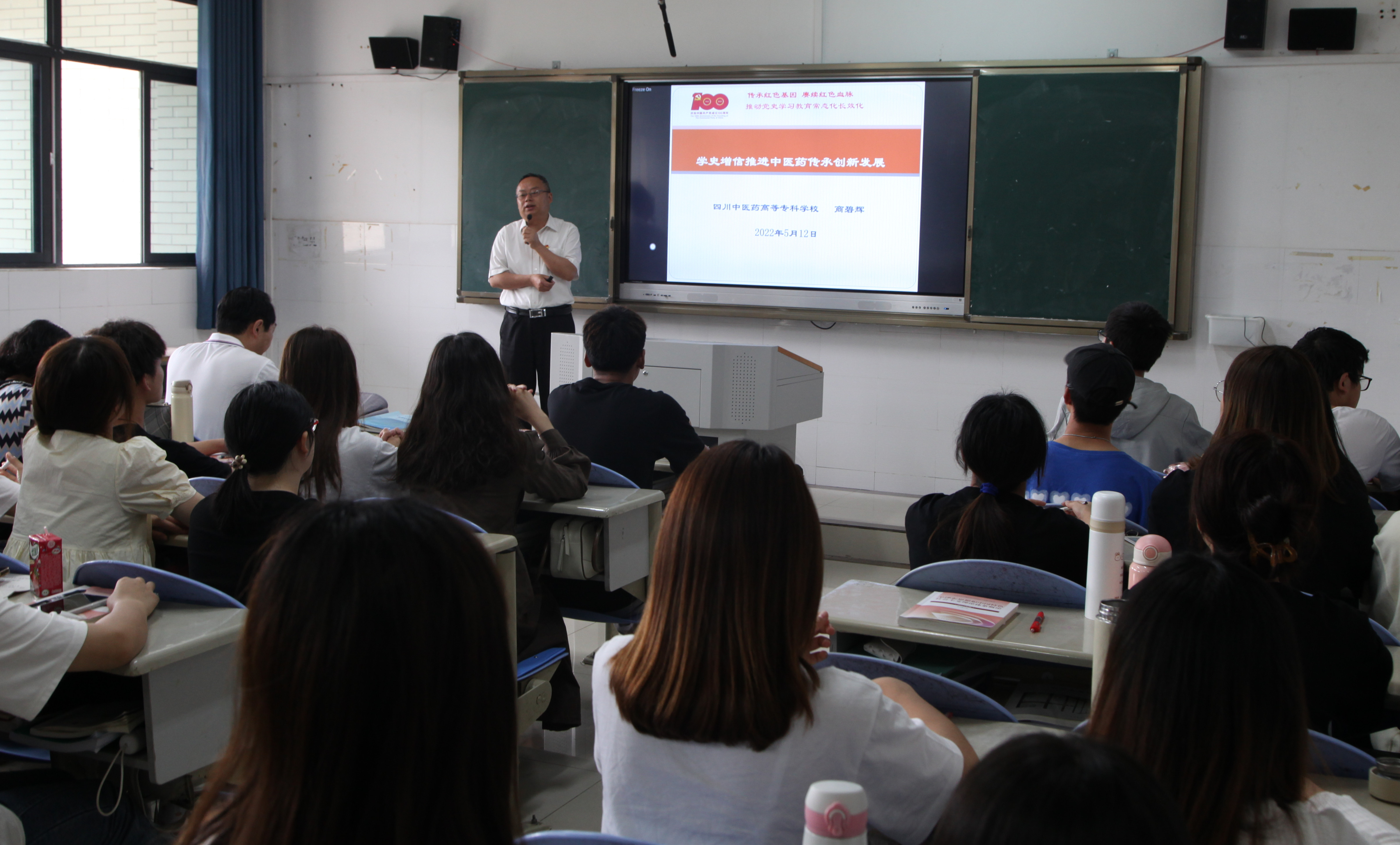 为把党史学习教育引向深入,持续开展常态化党史学习,校党委开展了“传承红色血脉 厚植大医情怀”的党史教育活动。5月12日,校党委委员、副校长商碧辉为2021级单招中医养生保健专业学生作了“学史增信推进中医药传承创新发展”的专题报告。