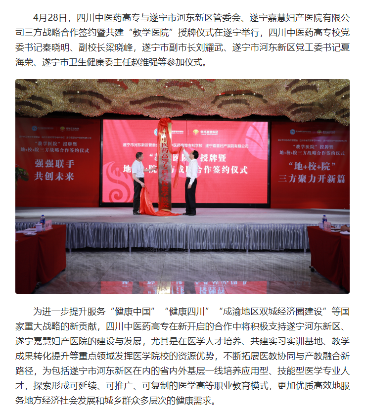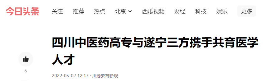 今日头条:四川中医药高专与遂宁三方携手共育医学人才