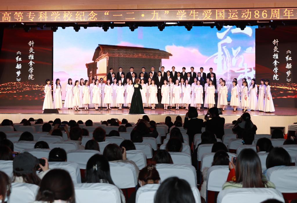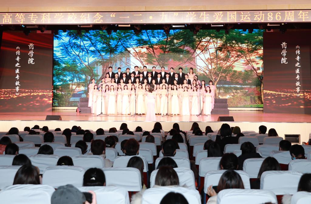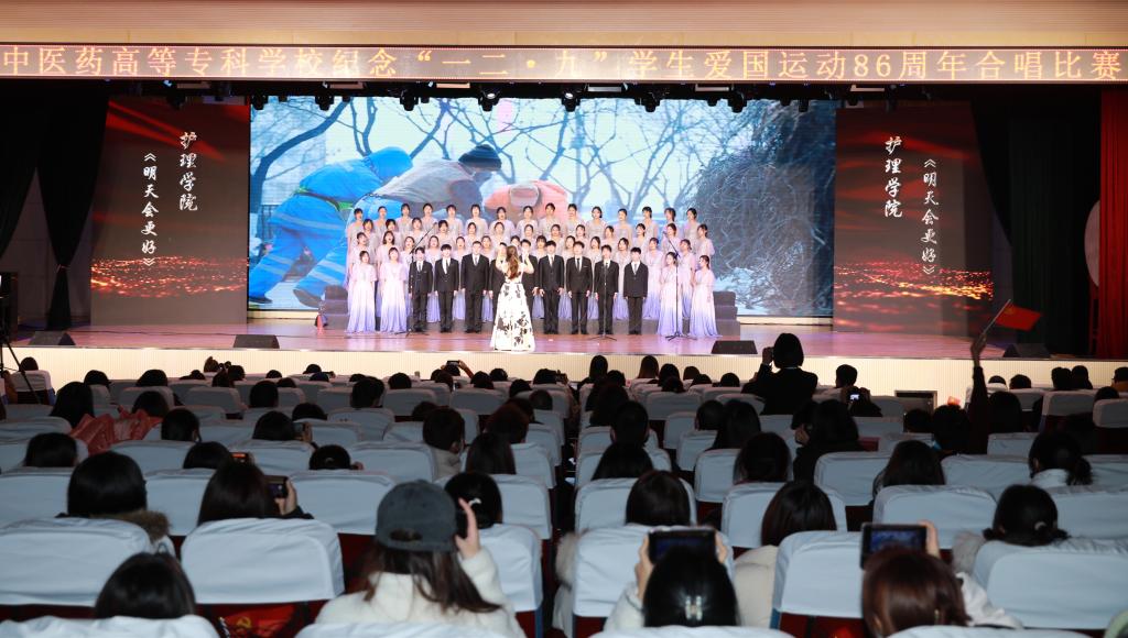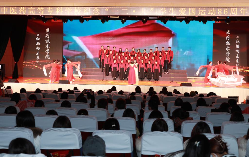 2021年12月9日,我校举办了“讴歌百年路青春正当时”纪念一二·九学生爱国运动86周年主题歌咏比赛,来自我校六个学院的7支合唱队伍以及校舞蹈队、校合唱团、校杏林青年宣讲团共同展示风采。在家校领导,各部门及学院负责人,各院党总支书记、团总支书记及辅导员和师生代表800余人参加。