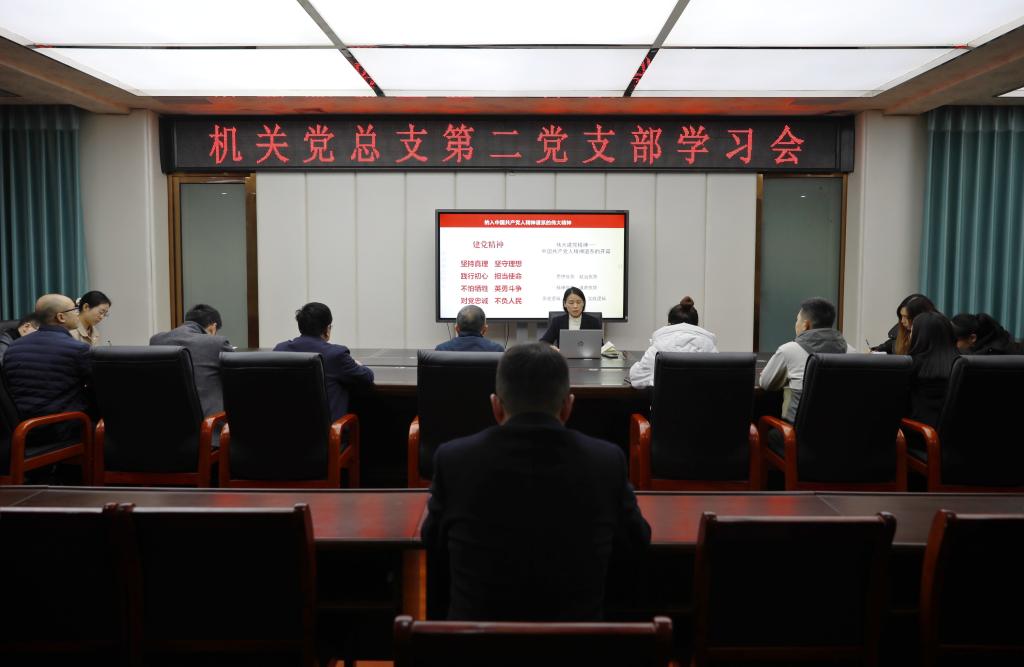 2021年11月18日,副校长肖玲以“共产党人的精神谱系”为主题,在机关党总支第二党支部学习会上作专题辅导报告。第二党支部全体党员聆听报告;第二党支部书记彭浩主持报告会。