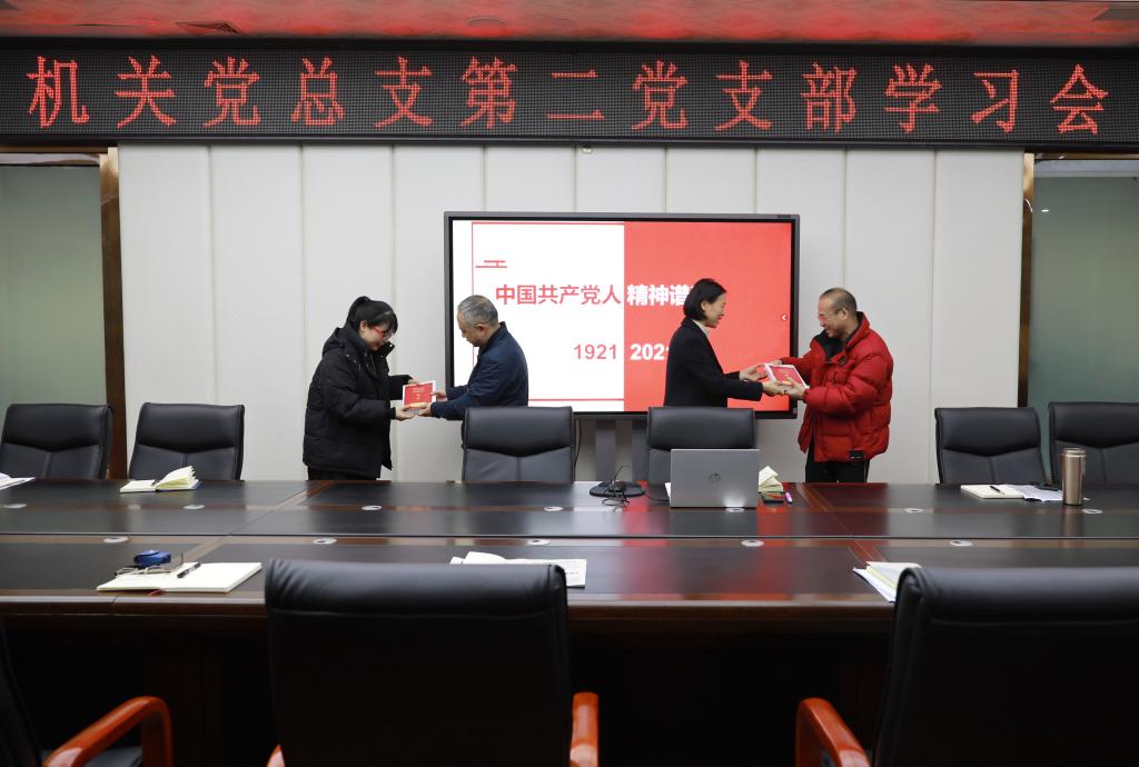 2021年11月18日,在学校机关党总支第二党支部学习会上,两名党员一起过政治生日,与支部全体党员集体重温了入党志愿书。
