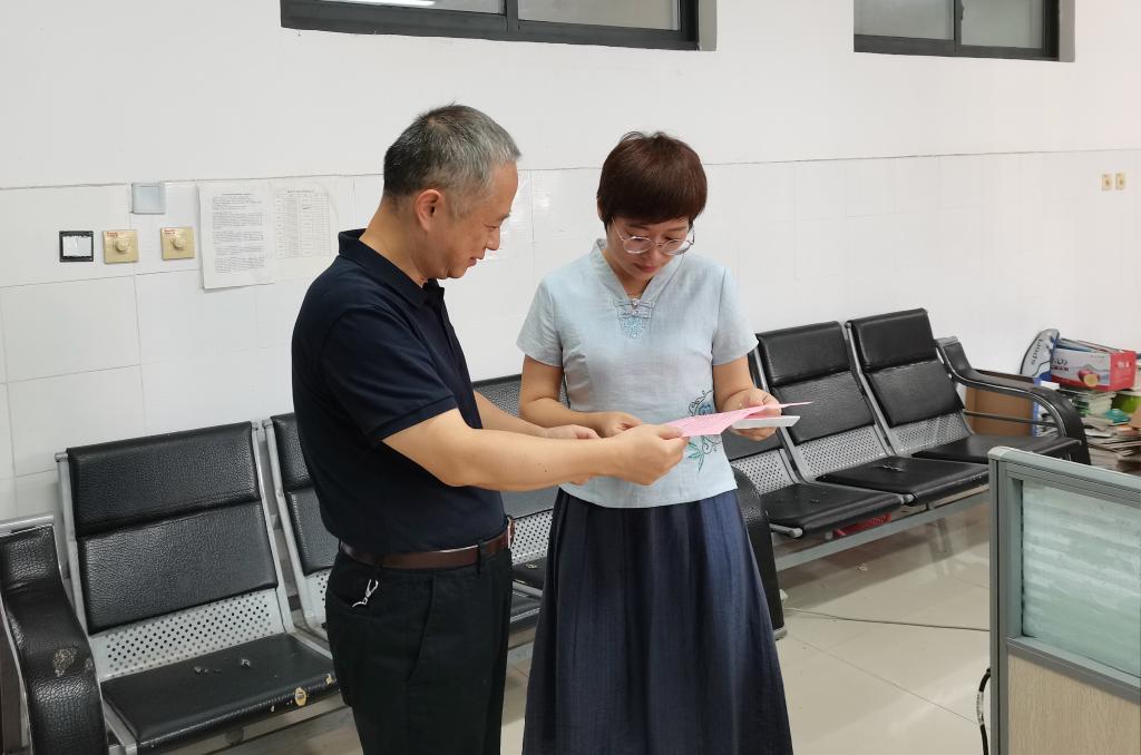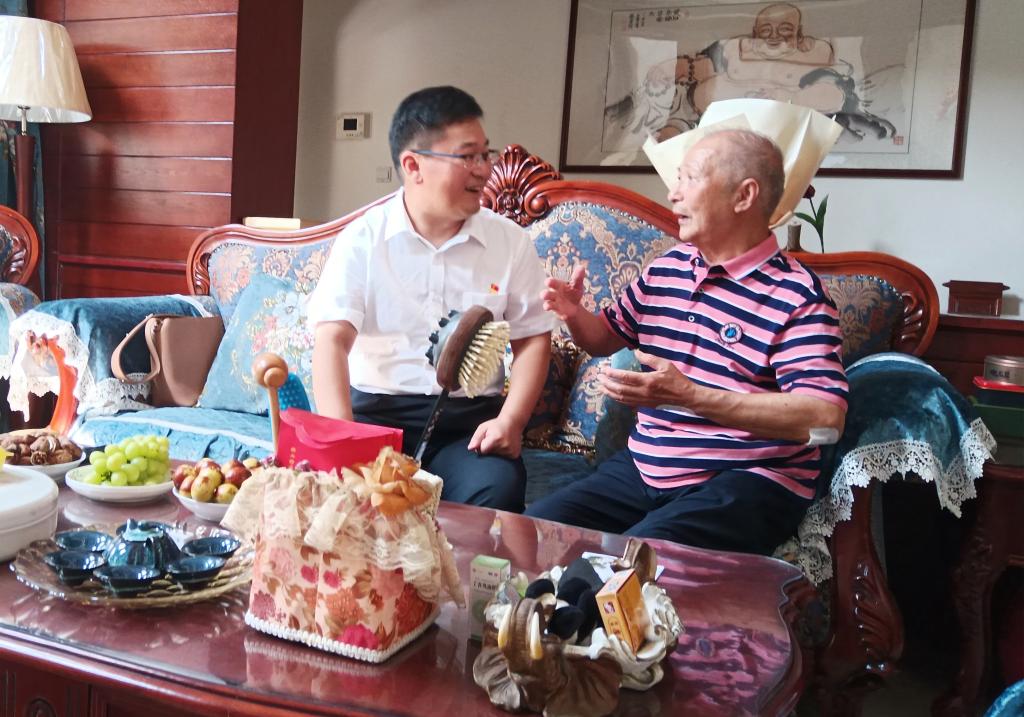 图为:副校长梁晓峰看望慰问老教师代表