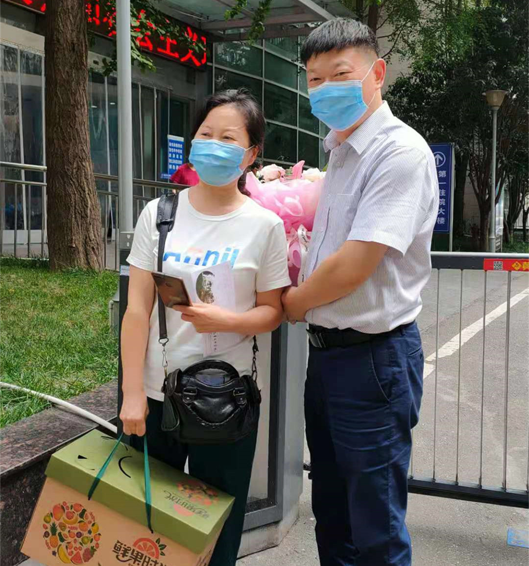 图为:校党委副书记汪涌泉看望慰问患病教师及家属