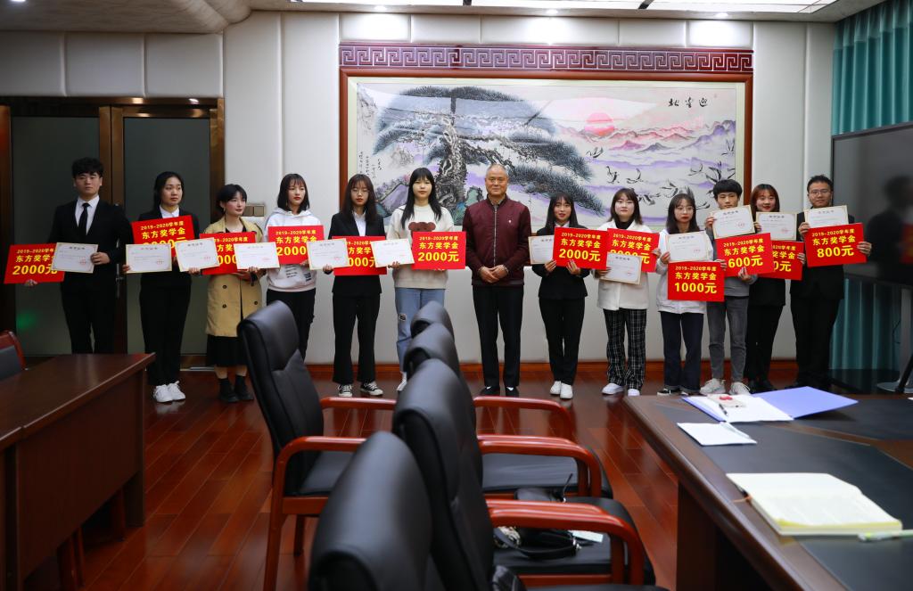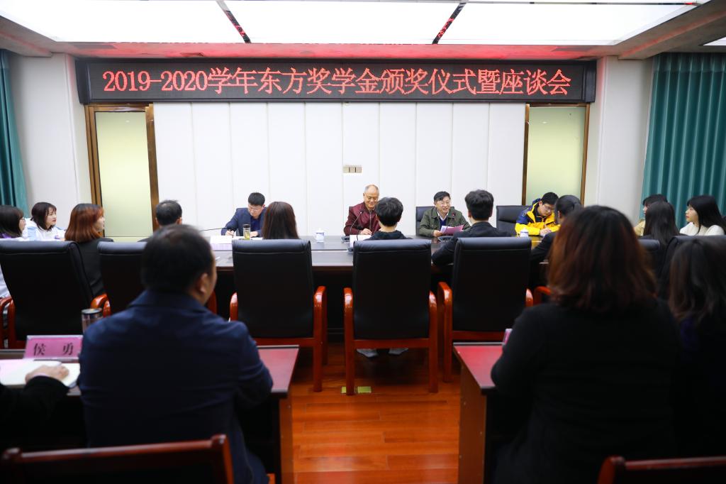 3月19日,我校举行2019—2020学年东方奖学金颁奖仪式暨座谈会,东方奖学金资助人、我校一九七七级杰出校友、现成都中医药大学教授廖品东到场为获奖学生代表颁奖;校长王飞、校党委副书记汪涌泉,学工部及各学院负责人以及获奖学生代表参加座谈会。