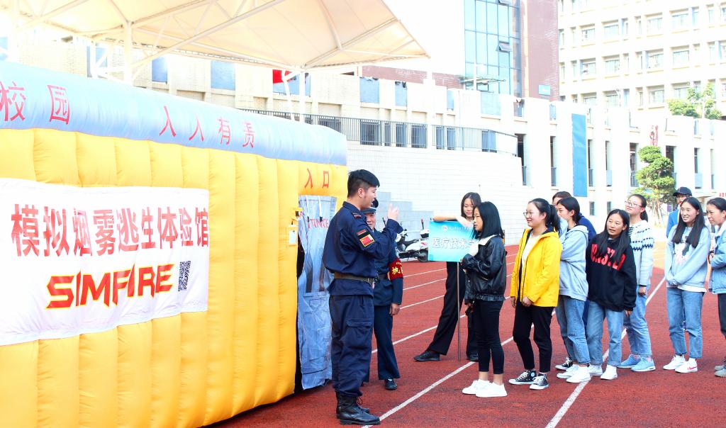 此次消防演练场馆分为模拟灭火演练馆和烟雾模拟逃生馆;培训教官结合学校的特点,有针对性地讲解了防火安全知识、火场逃生方法以及火场紧急状况的应对措施,让同学们都能正确使用最常见的灭火器材,掌握简单、易学、实用的消防安全知识,在面对火灾威胁时能冷静、积极地采取各种有效措施自防自救,从而保证生命安全。