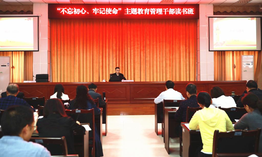 我校“不忘初心、牢记使命”主题教育领导小组副组长、纪委书记李文虎在专题讲座会议上强调,各党总支、支部、党小组要结合作主题教育,进一步健全完善学习党史、新中国史的常态长效机制,要与学习习近平新时代中国特色社会主义思想、学习习近平总书记关于”不忘初心、牢记使命“的重要论述,与开展 “四项教育”(革命传统、先进典型、形势政策、反面警示)结合起来,采取多种方式组织深入学习研讨,特别是要把党和国家的历史经验运用到主题教育的各项重点措施和工作环节中去,推动主题教育取得明显实效;广大党员、干部要围绕《中国共产党的九十年》等辅助读物,静下心来认真研读党史、新中国史,不断强化历史意识、学会历史思维、培养历史眼光,自觉做到知史爱党、知史爱国,自觉做到常怀忧党之心、为党之责、强党之志。