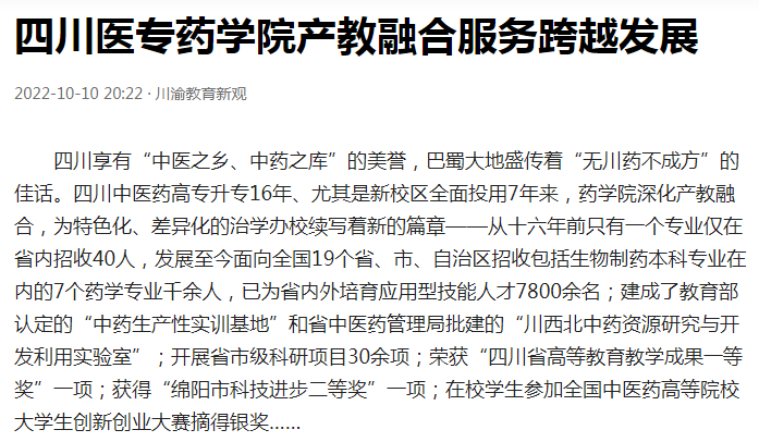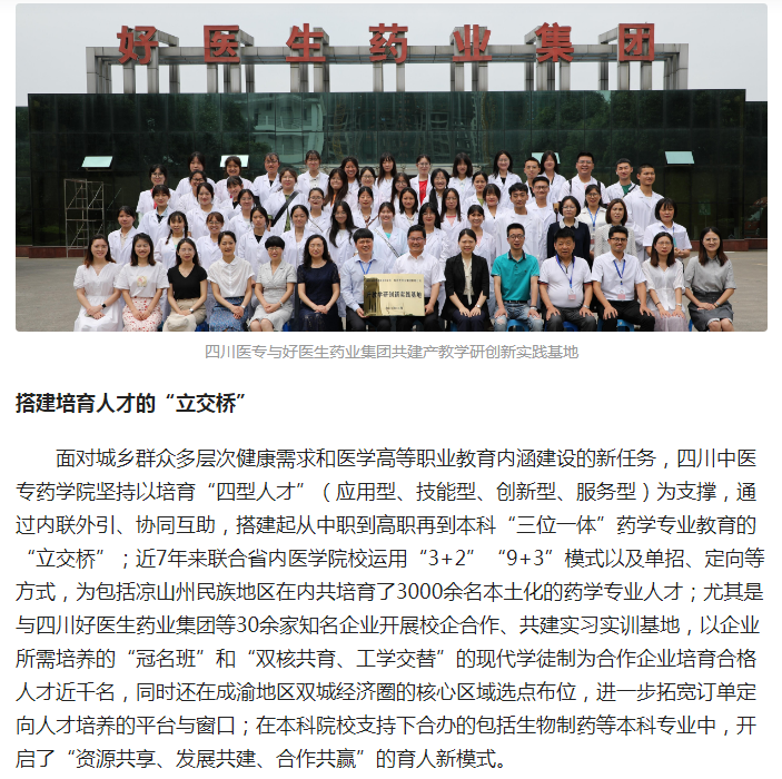 今日头条:四川医专药学院产教融合服务跨越发展