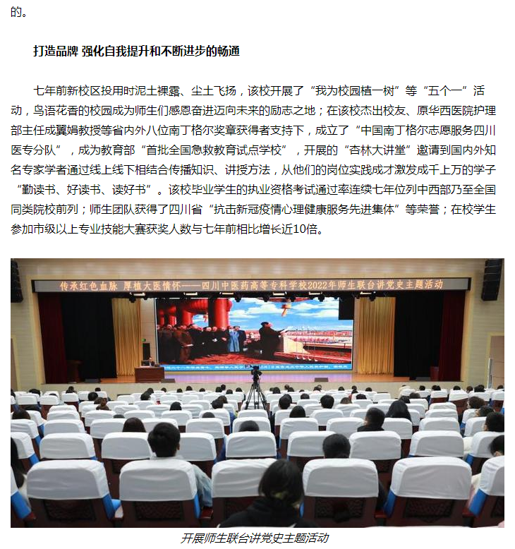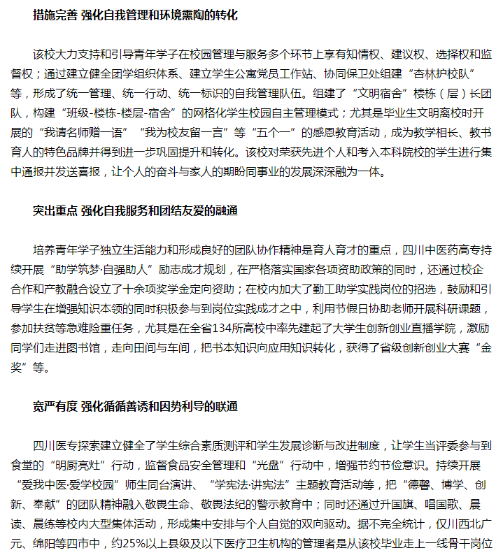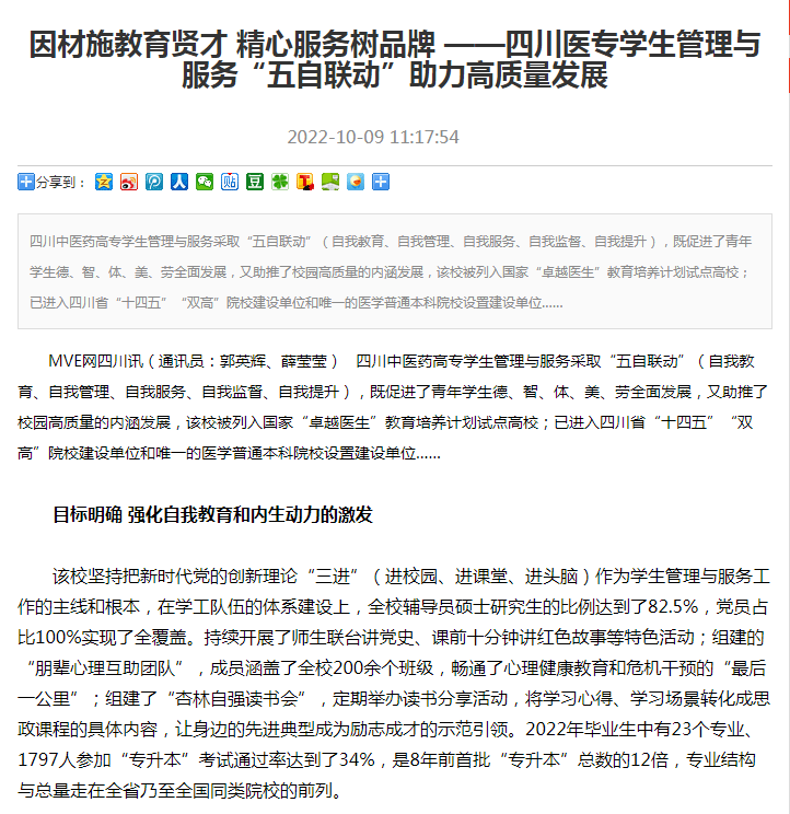 现代职教网:因材施教育贤才 精心服务树品牌 ——四川医专学生管理与服务“五自联动”助力高质量发展