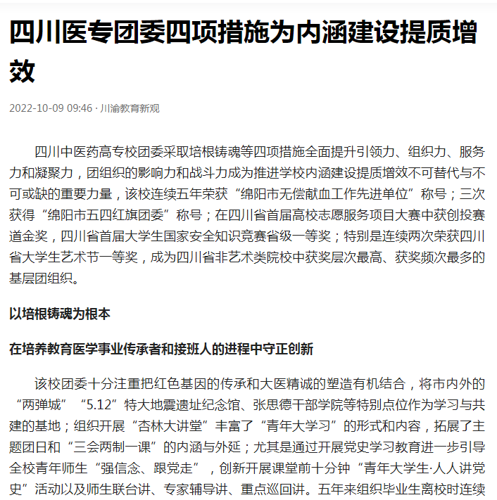 今日头条:四川医专团委四项措施为内涵建设提质增效