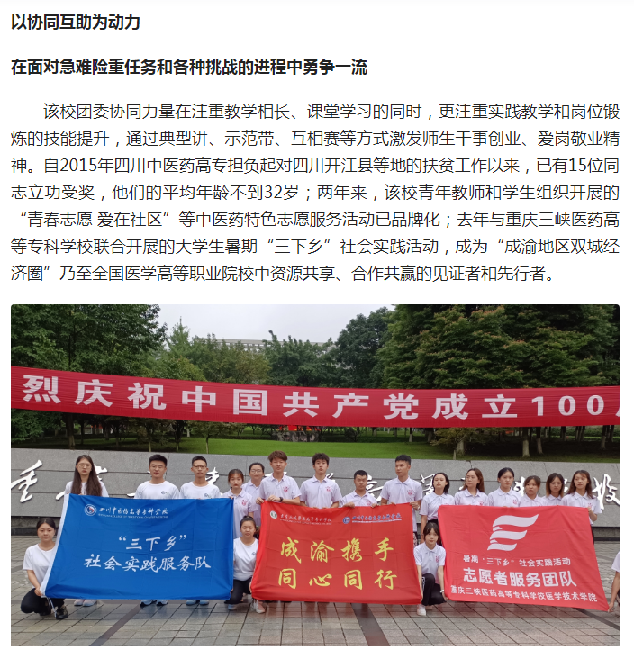 四川先锋网:团徽在奋斗的历程中辉耀闪烁——四川中医药高专校团委四项措施为内涵建设提质增效