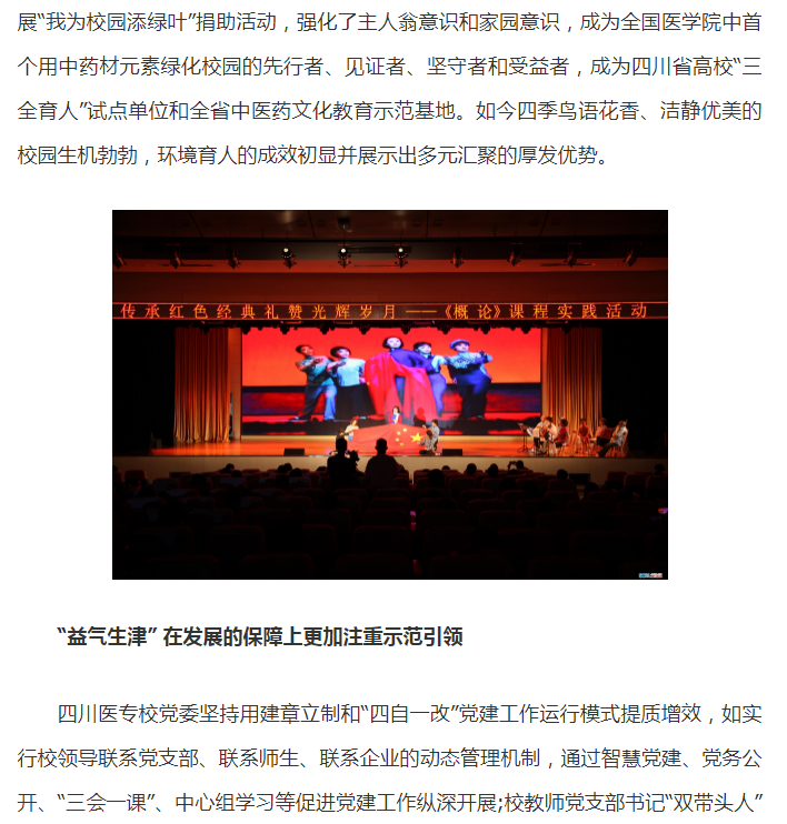 四川先锋网:四川中医药高专:党建聚合力 发展谱新篇
