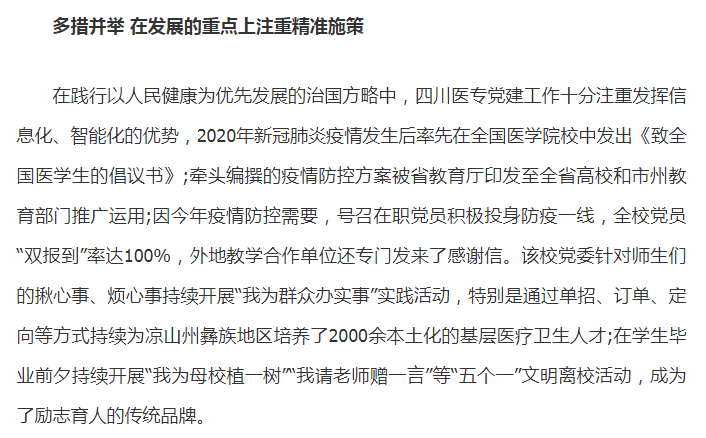 四川在线:四川医专:党建聚合力 发展谱新篇