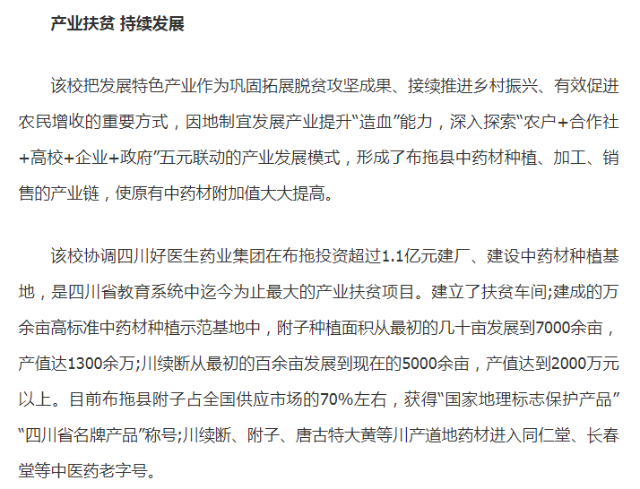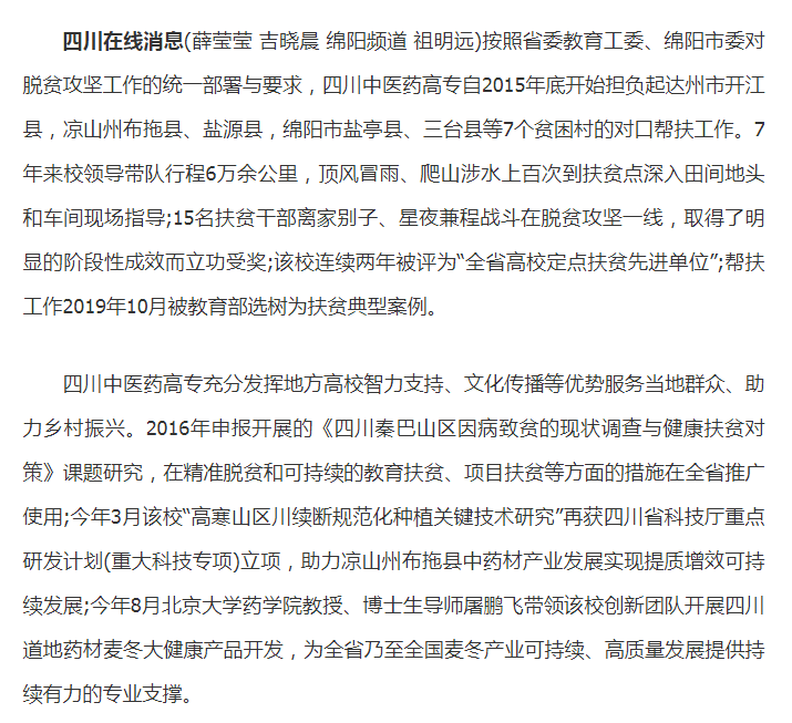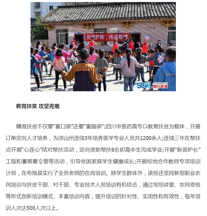 学习强国:七年扶贫路 撒满医专情丨四川中医药高专帮扶工作被教育部选树为扶贫典型案例