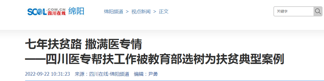 四川在线:七年扶贫路 撒满医专情——四川医专帮扶工作被教育部选树为扶贫典型案例