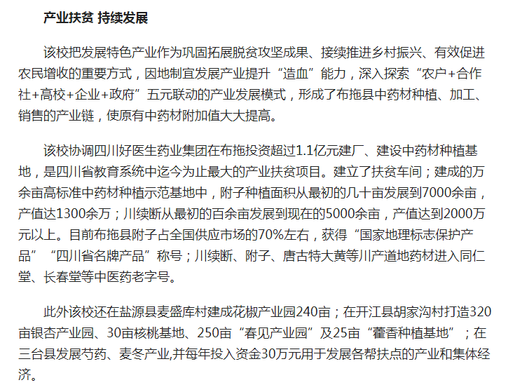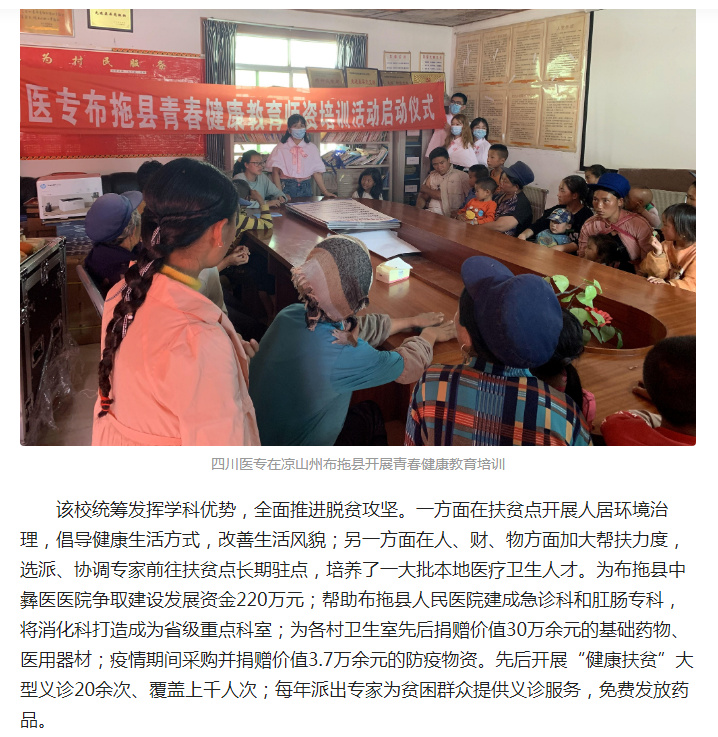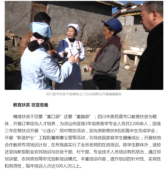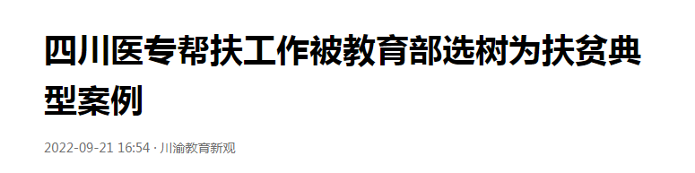 今日头条:四川医专帮扶工作被教育部选树为扶贫典型案例