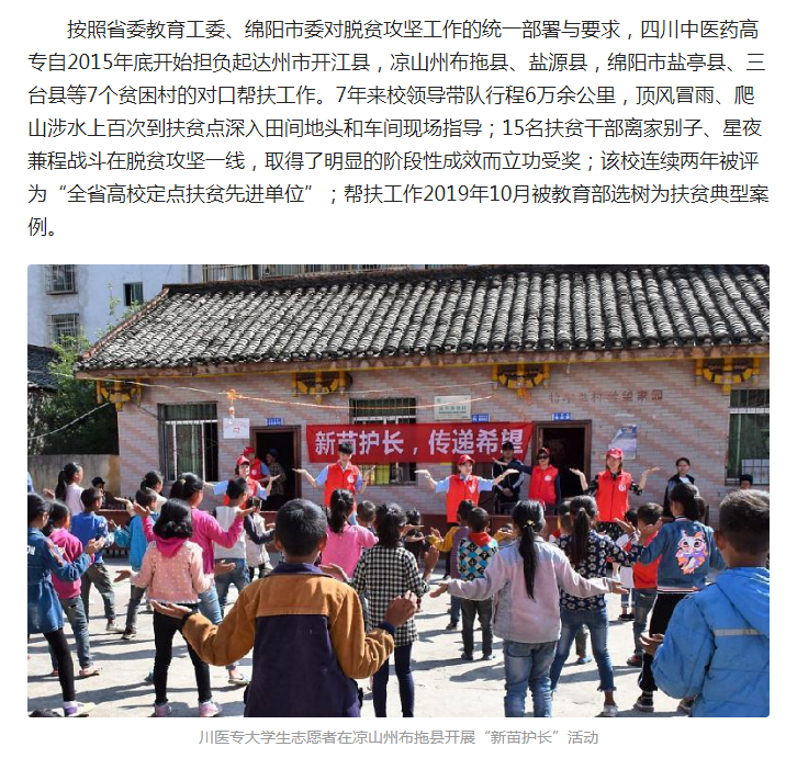 四川先锋网:七年扶贫路 撒满医专情——四川医专帮扶工作被教育部选树为扶贫典型案例