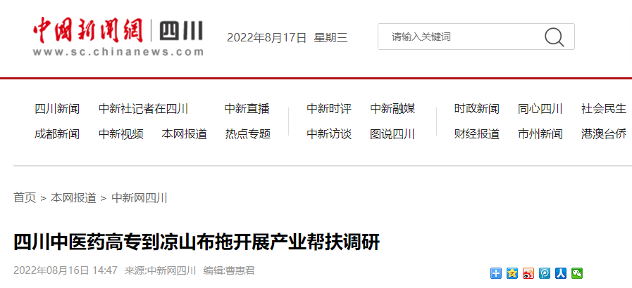 中国新闻网:四川中医药高专到凉山布拖开展产业帮扶调研