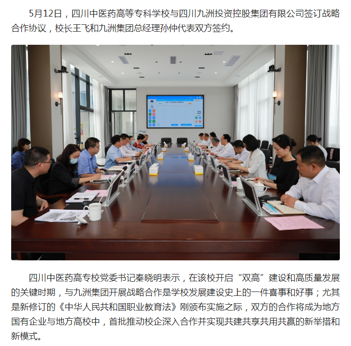 今日头条:四川中医药高专与四川九洲集团联手推进校企深度融合发展