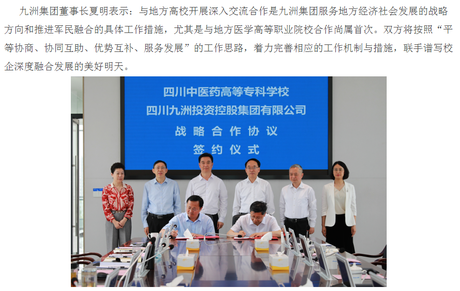 今日头条:四川中医药高专与四川九洲集团联手推进校企深度融合发展