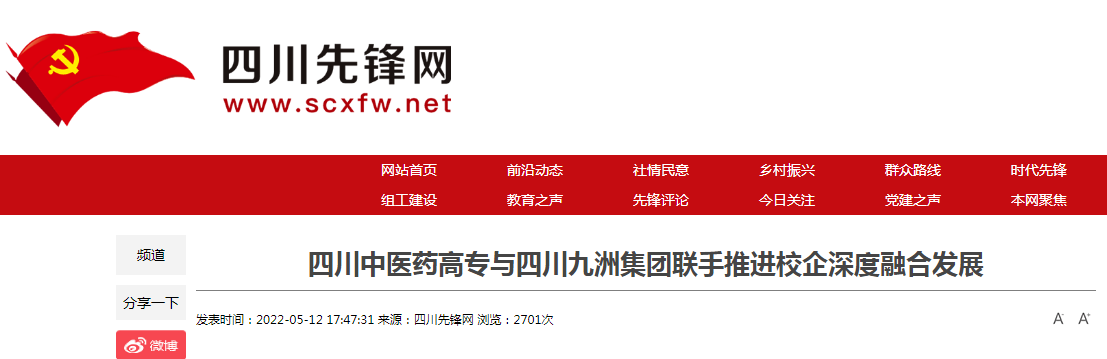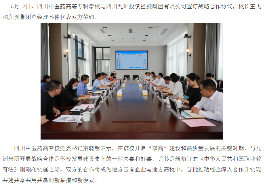 四川先锋网:四川中医药高专与四川九洲集团联手推进校企深度融合发展