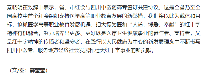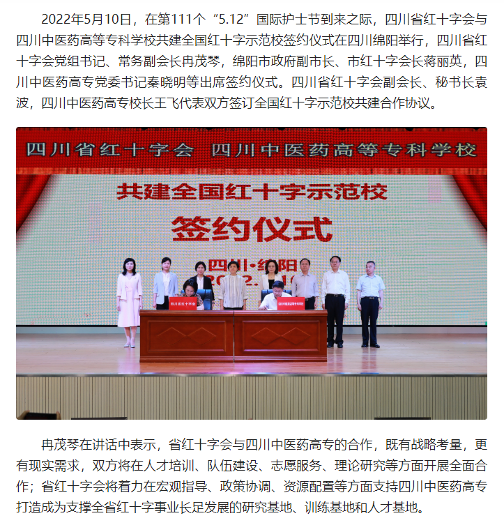 今日头条:四川省红十字会与四川中医药高专签约共建全国红十字示范校