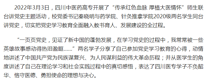 今日头条:四川中医药高专:师生联台讲党史 培根铸魂育新人