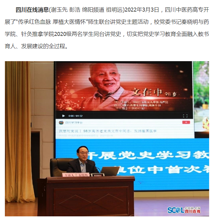 四川在线:四川中医药高专:师生同台讲党史 培根铸魂育新人