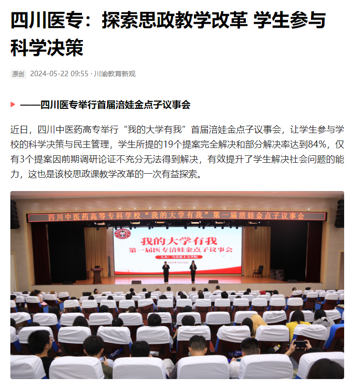 今日头条:四川医专:探索思政教学改革 学生参与科学决策