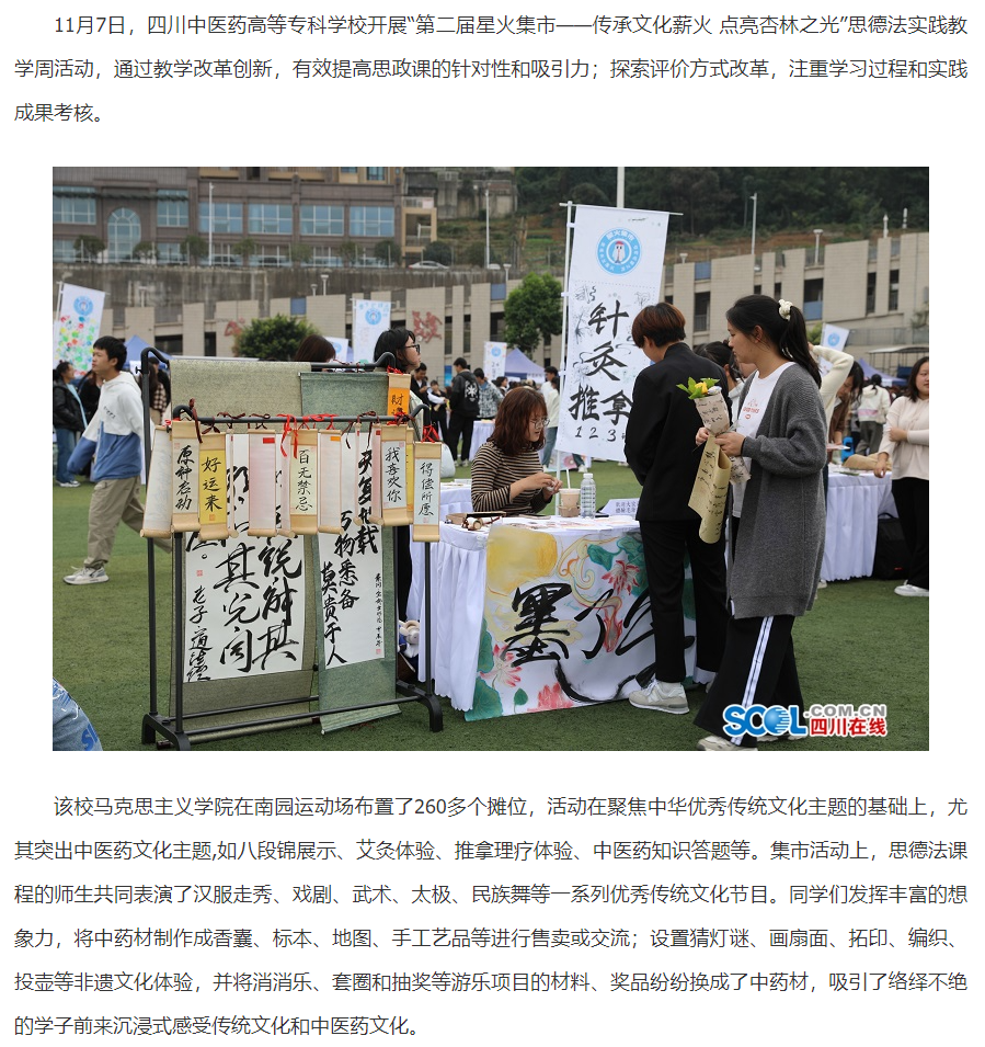 四川在线:四川医专举办星火集市 传承文化薪火点亮杏林之光