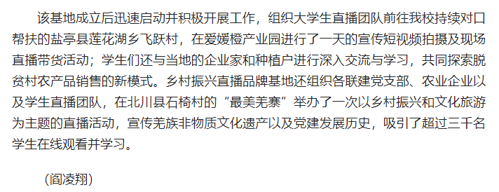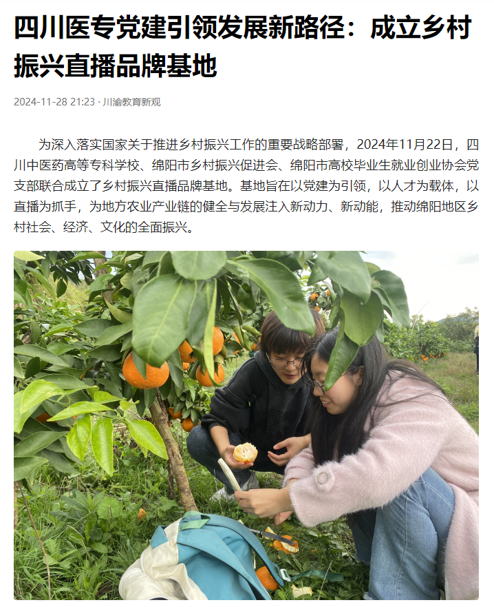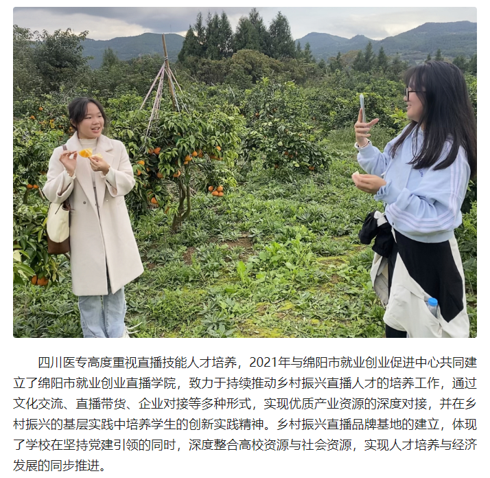 今日头条:四川医专党建引领发展新路径:成立乡村振兴直播品牌基地