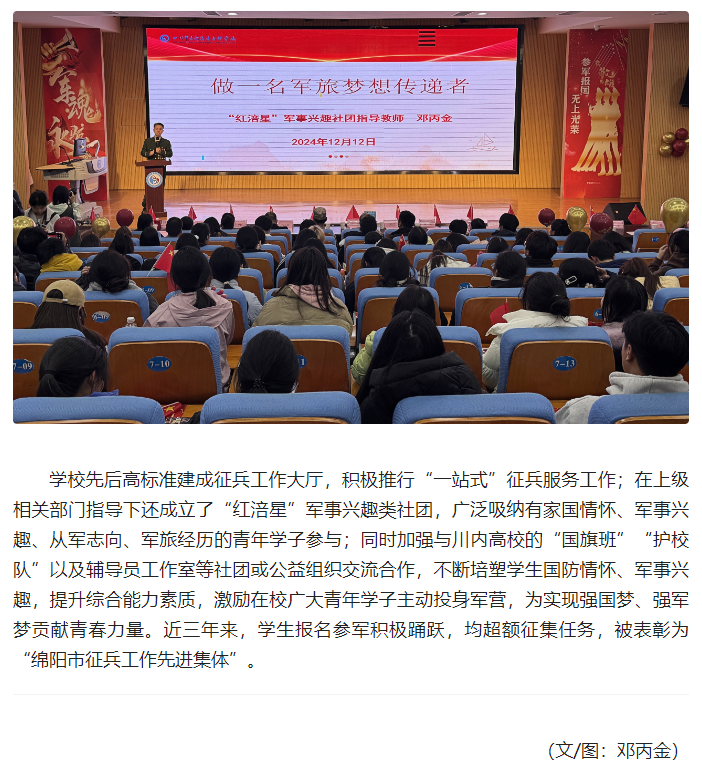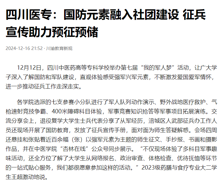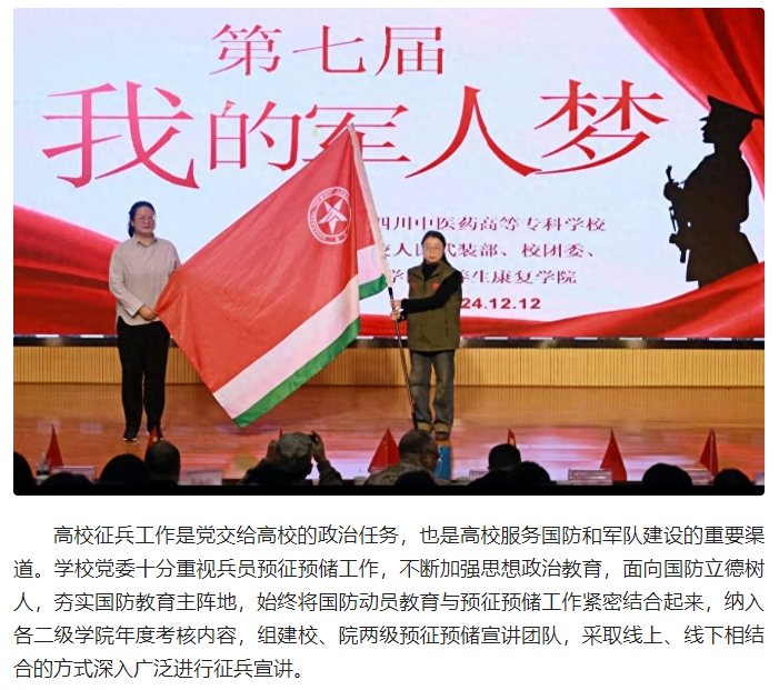今日头条:四川医专:国防元素融入社团建设 征兵宣传助力预征预储