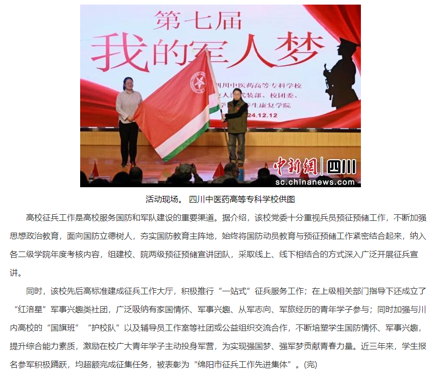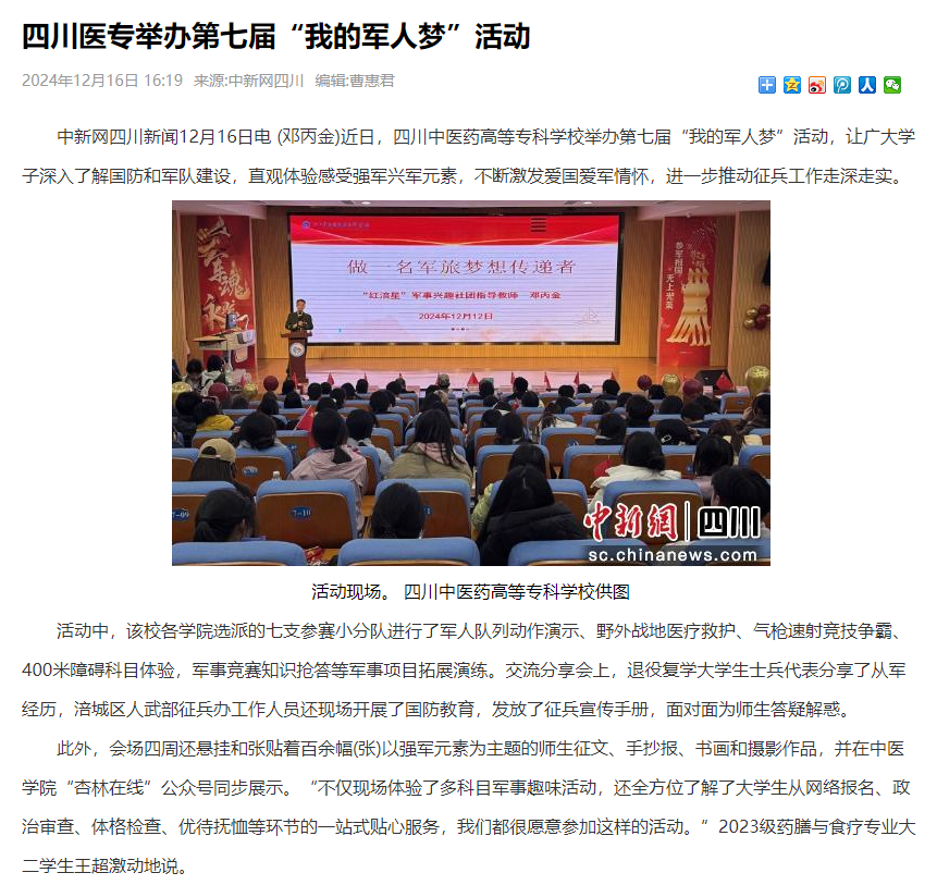 中国新闻网:四川医专举办第七届“我的军人梦”活动