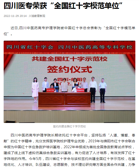 四川先锋网:四川中医药高专荣获“全国红十字模范单位”
