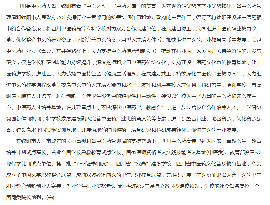 下一篇:现代职教网:四川中医药高等专科学校:推动中医药高等职业教育人才培养的创新之策