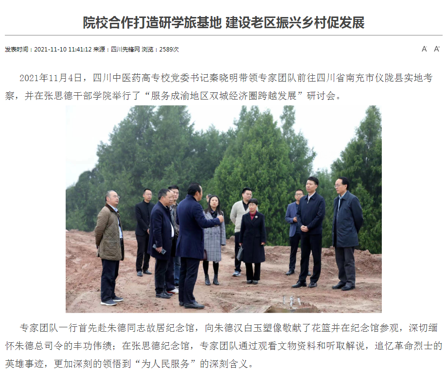 下一篇:今日头条:四川中医药高专:院校合作打造研学旅基地 建设老区振兴乡村促发展
